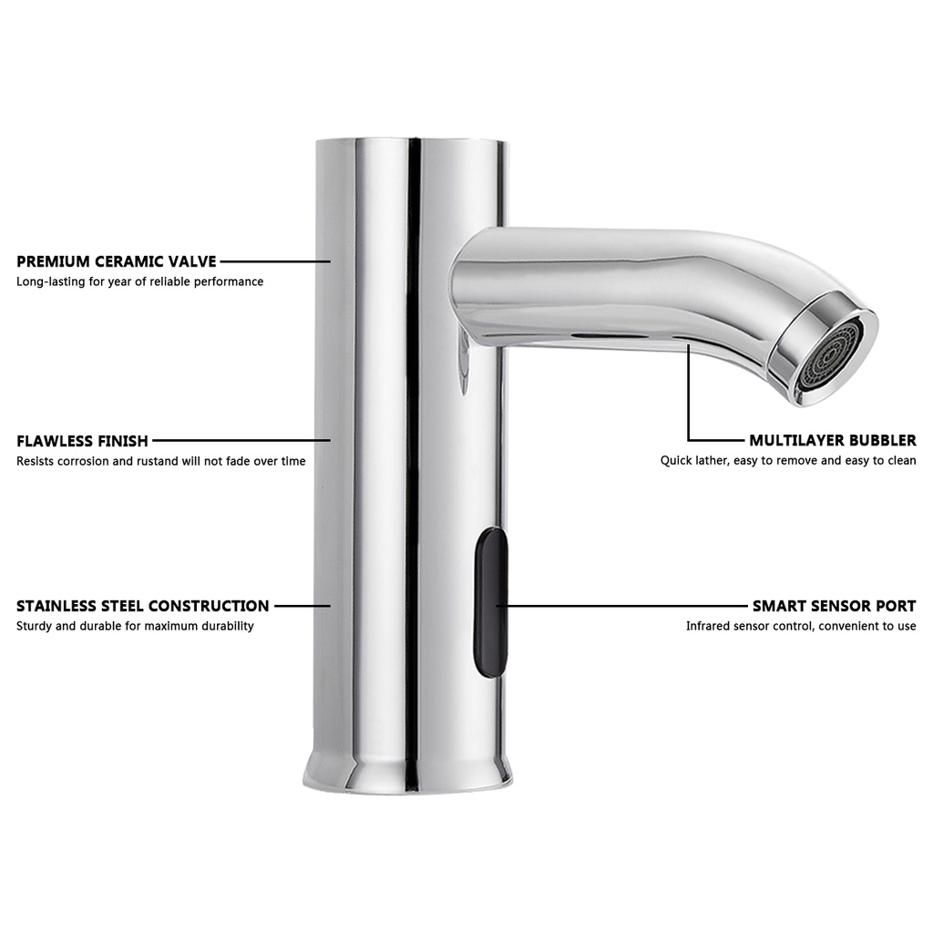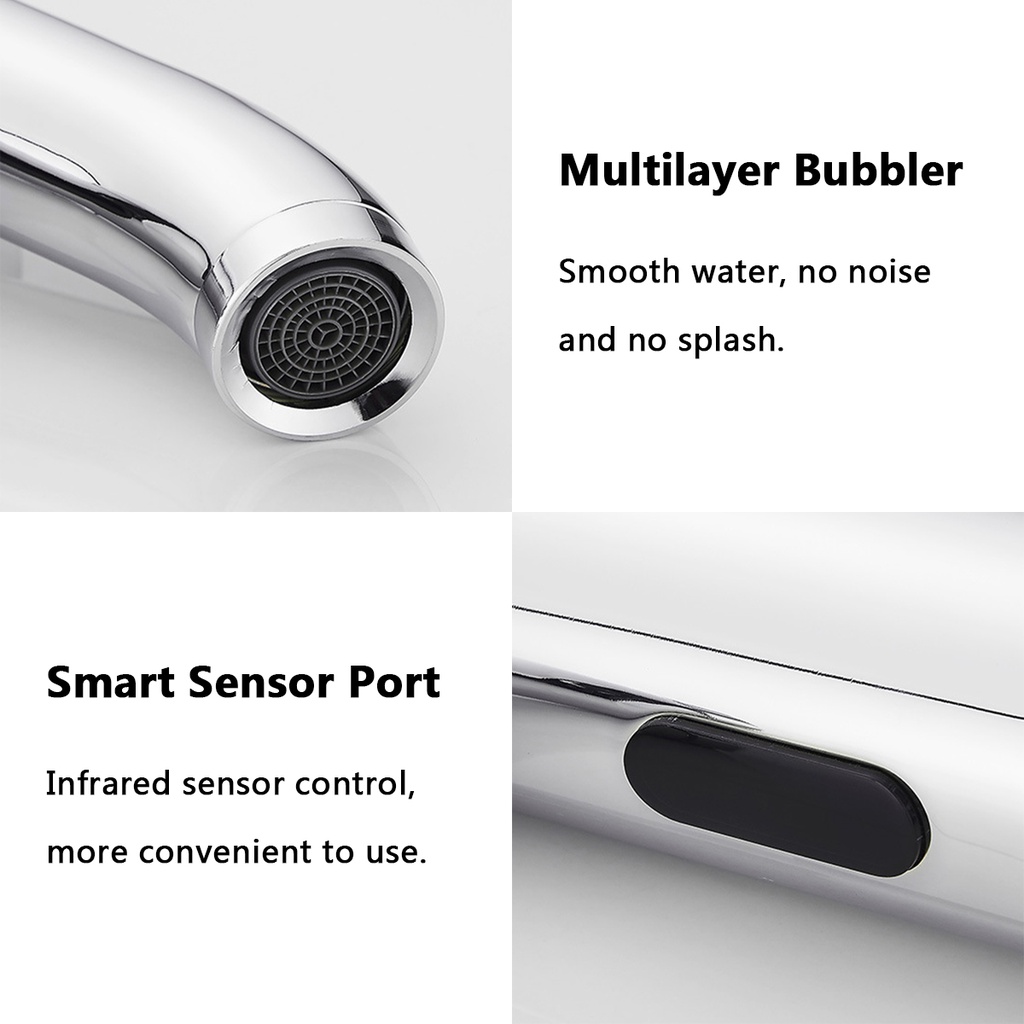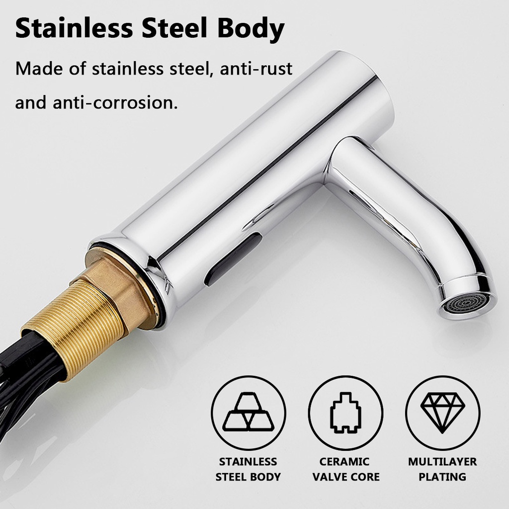 Stainless Steel Bathroom Automatic Infrared Sensor Sink Touchless Faucet Basin Water Tap Single Cold Deck Mounted