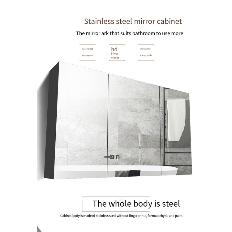 Stainless Steel Bathroom Mirror Cabinet Wall-Mounted Toilet Mirror Box Toilet Mirror with Shelf Dressing Storage