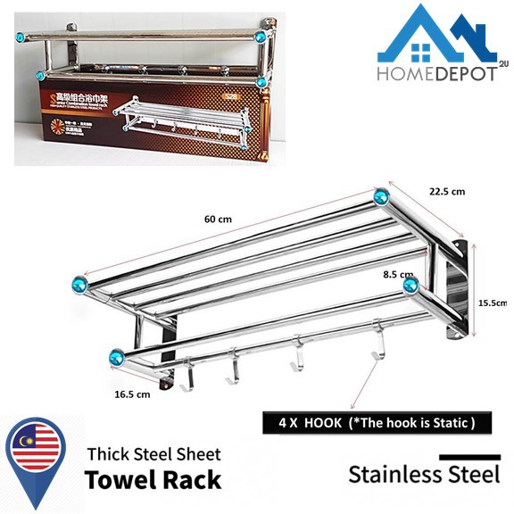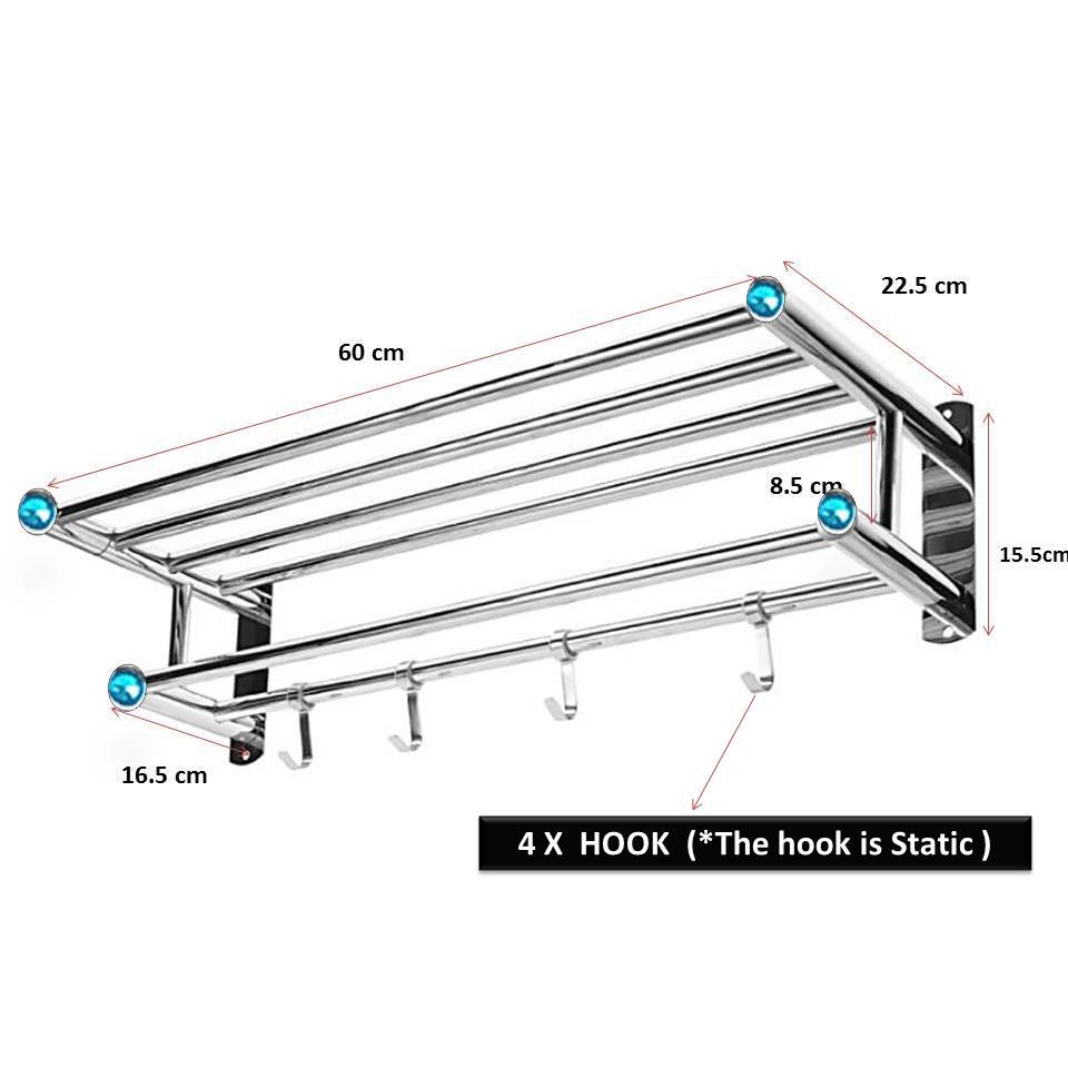 Stainless Steel Bathroom Toilet Towel 4 Hooks Clothes Hanger Rack