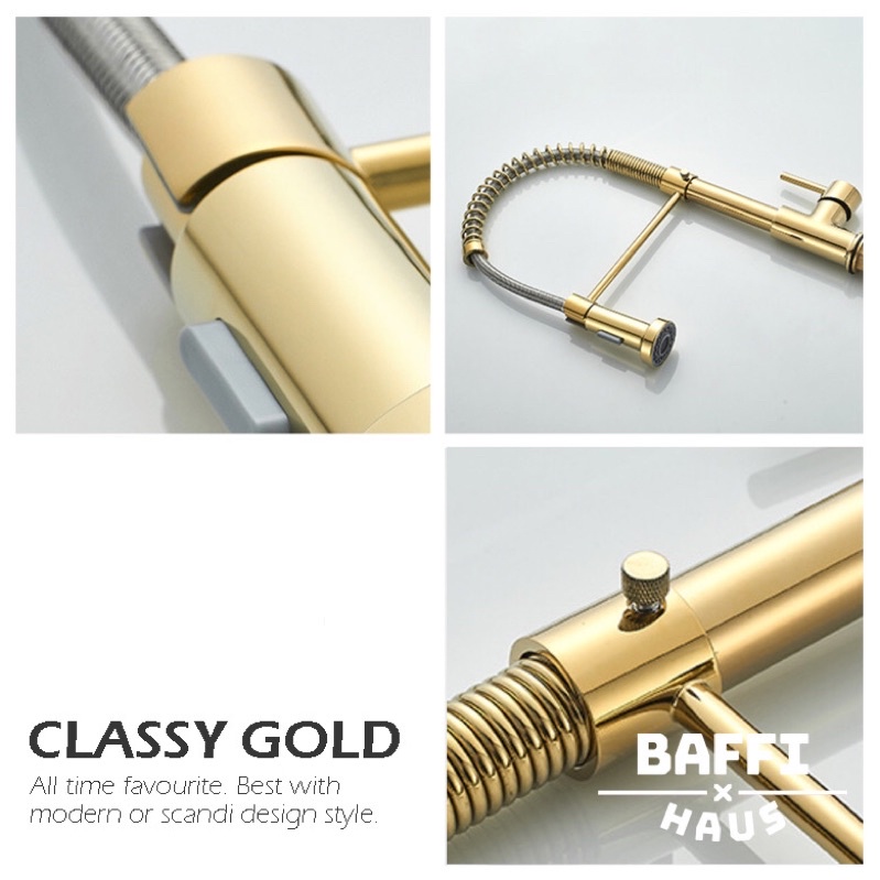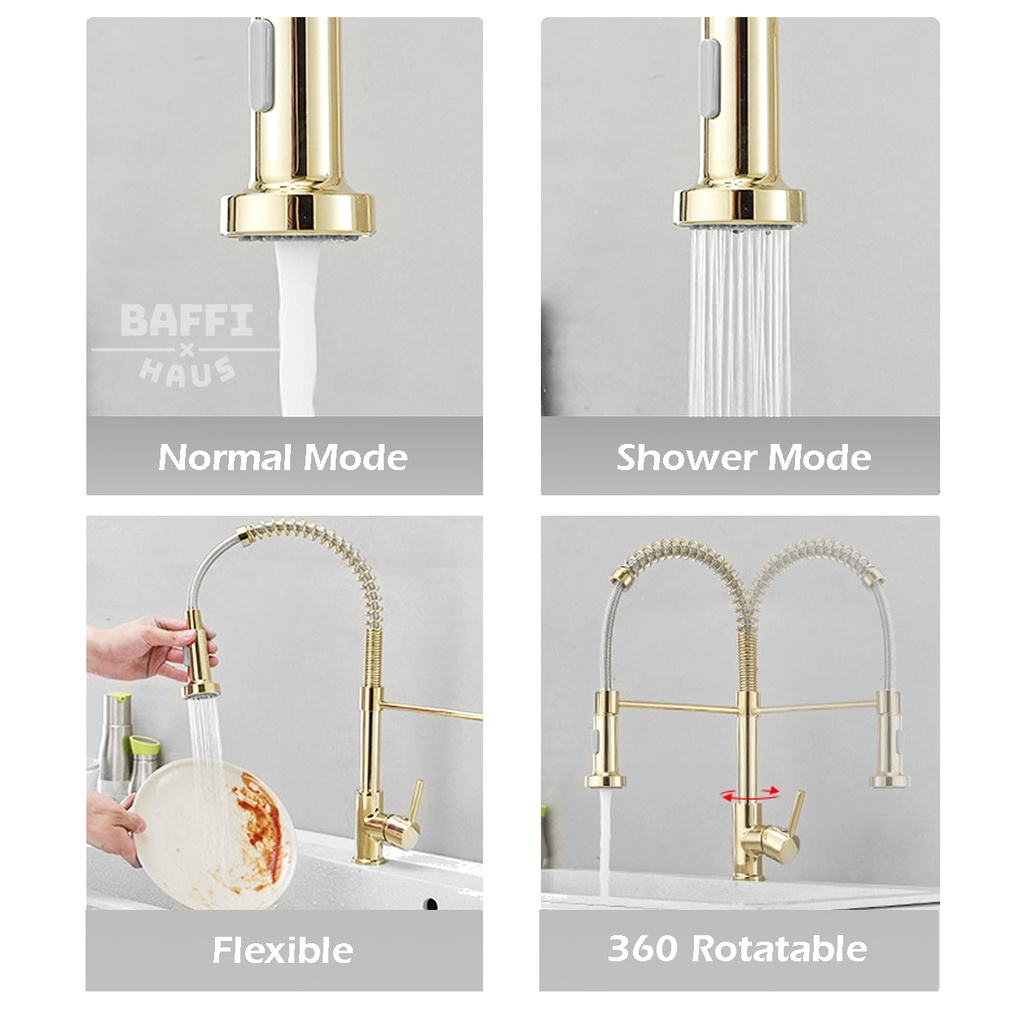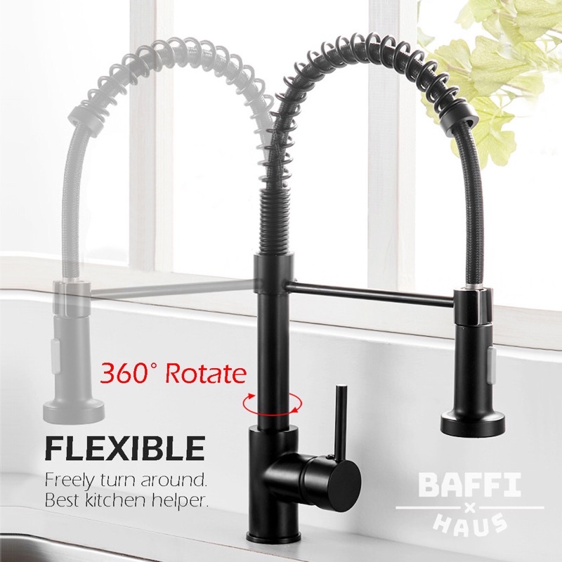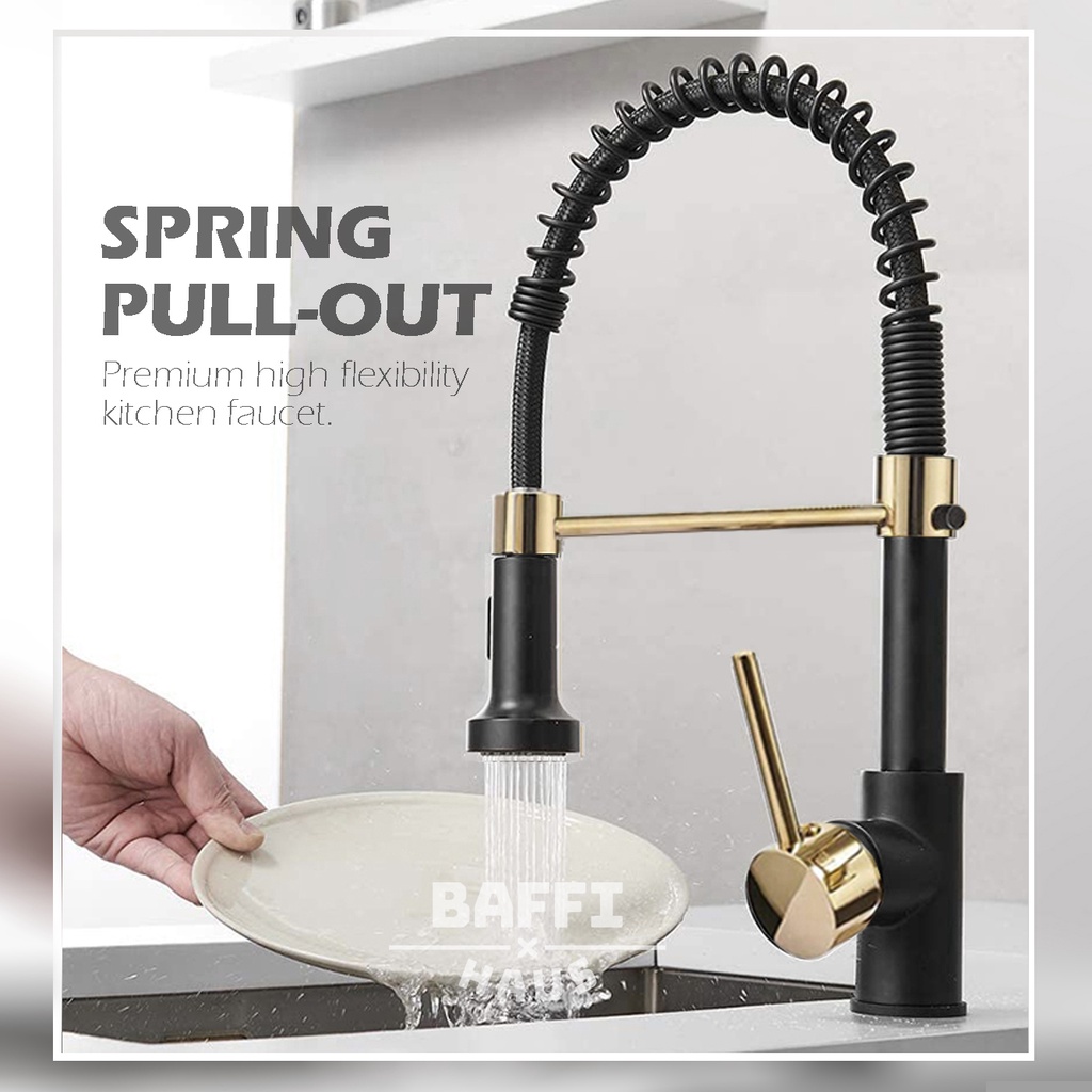 Stainless Steel Black Gold Spring Pull Out Kitchen Faucet Hot Cold Mixer Faucet