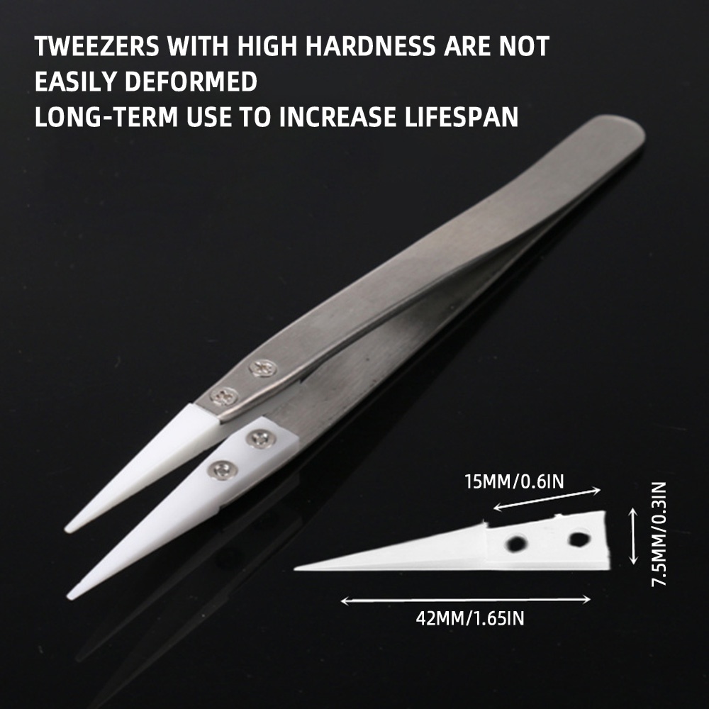 Stainless Steel Ceramic Tweezers High Quality Heat Resistant Non-Conductive Ceramic Tip DIY Tool
