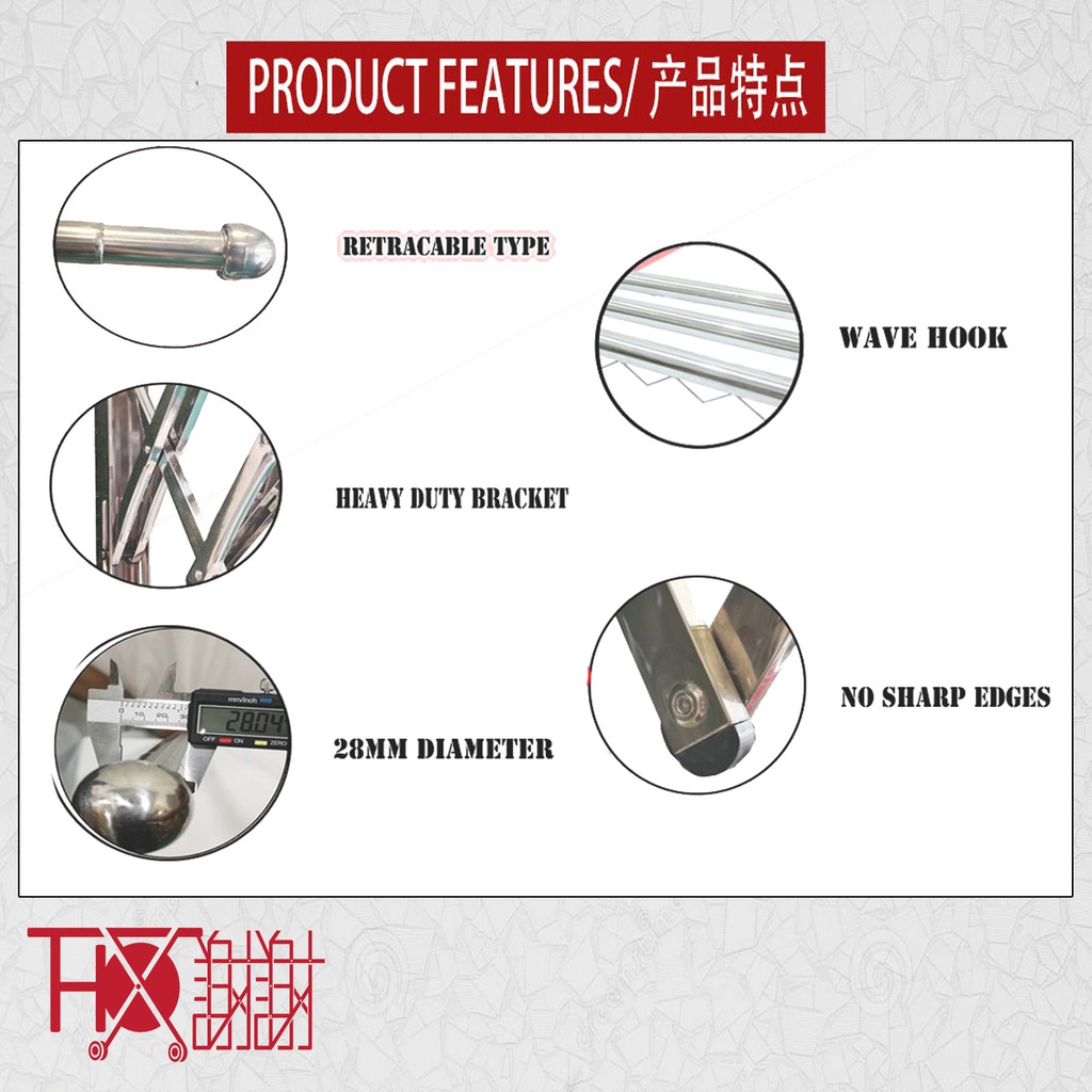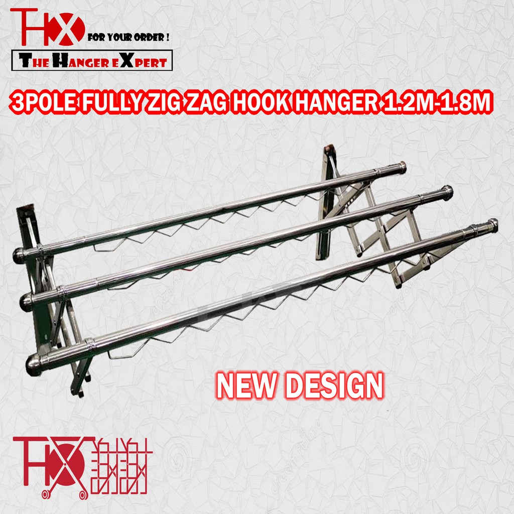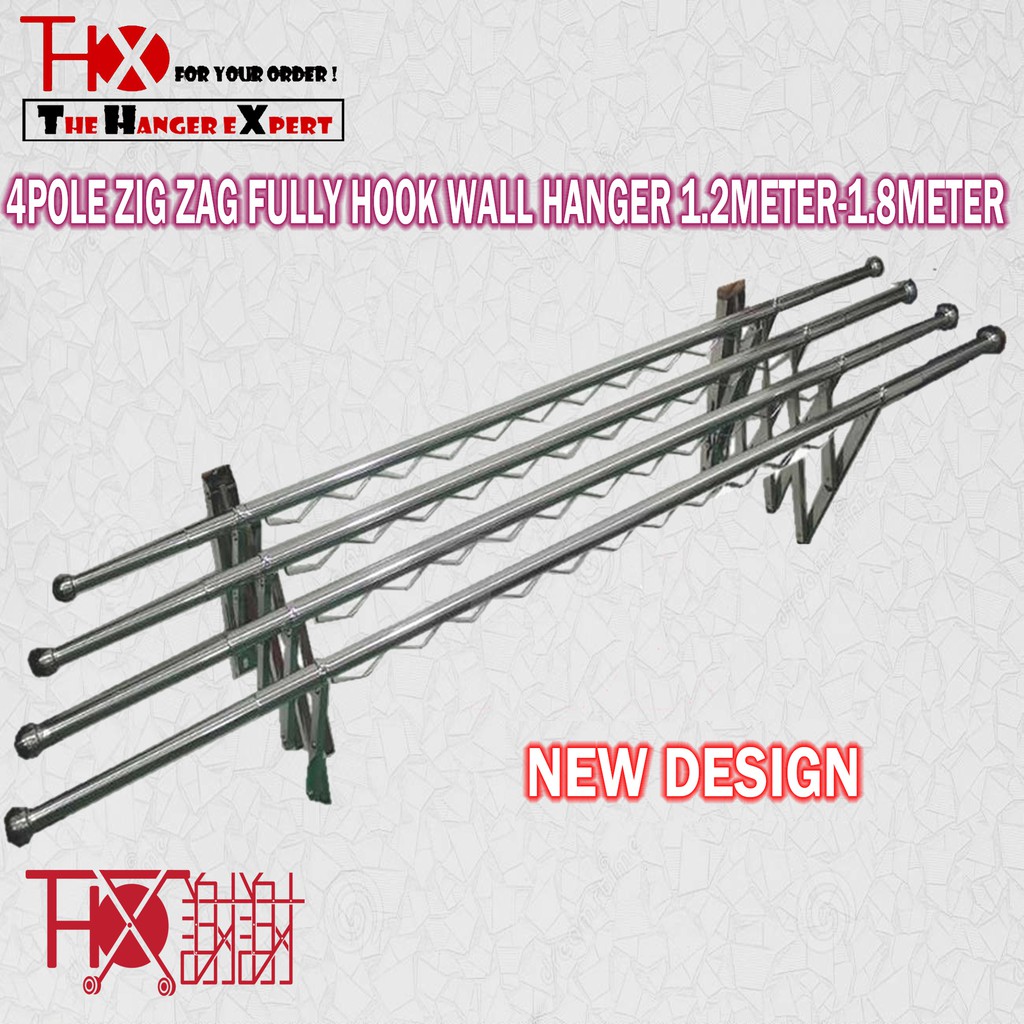 Stainless Steel Cloth Hanger Wall Type TelescopicThx 28MM X 3 Pole 1.2M-1.8M 4 Pole 1.2M-1.8M (Fully Zig Zag)