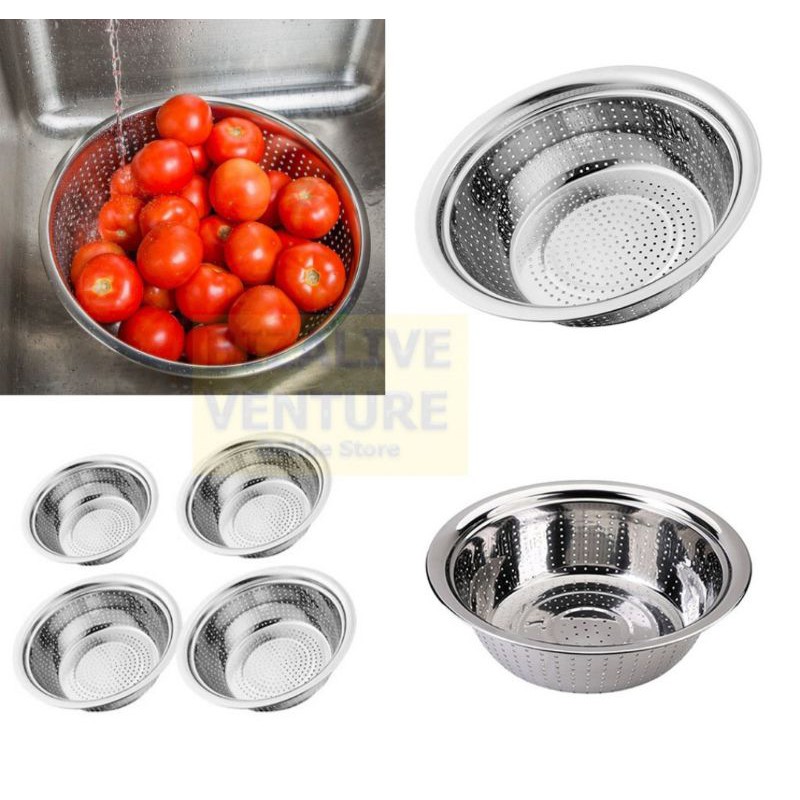 Stainless Steel Colander D23cm , D28cm , D32cm , D34cm , D38cm | Drainer Bowl | Food Strainer | Penapis Makanan | Tapis