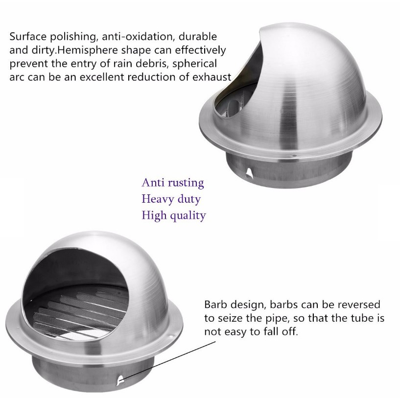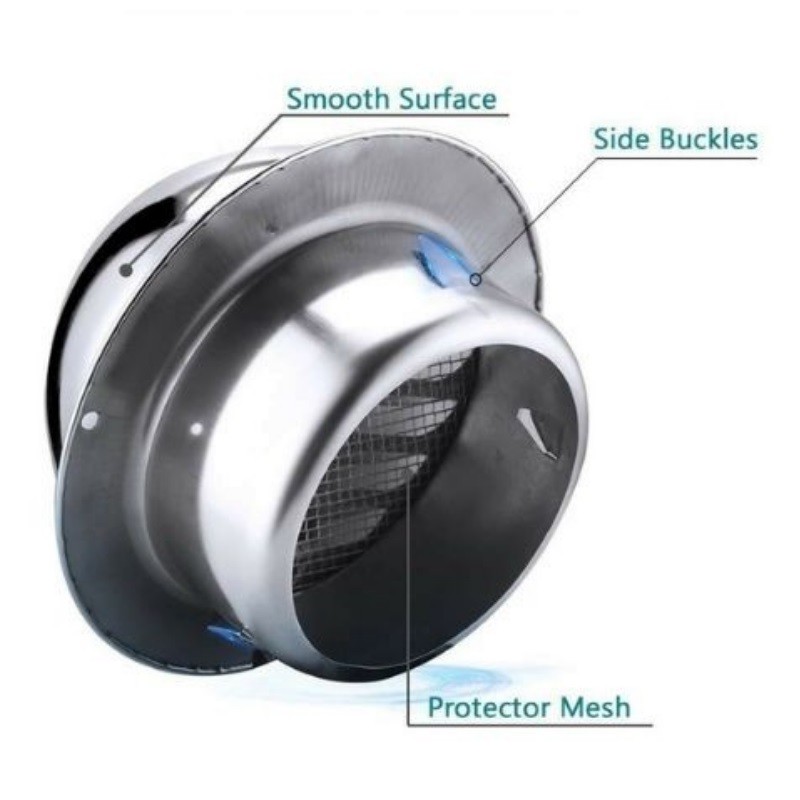 Stainless Steel Cooker Hood Ducting Cap 4" (100mm) 5" (125mm) 6" (150mm) 7" (180mm)
