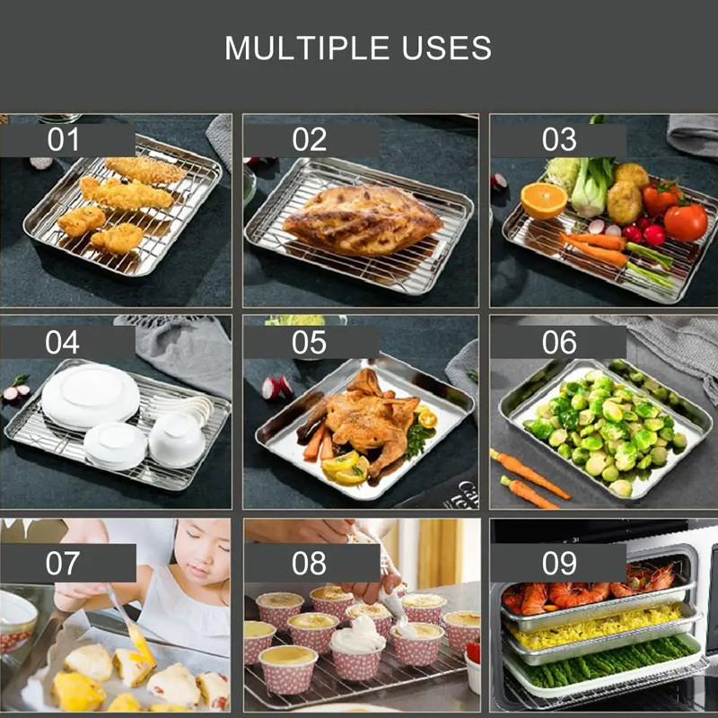 Stainless Steel Cooling Tray with Rack Cooking Baking Pan Grill Rack Oven Tray Plate Display Stand