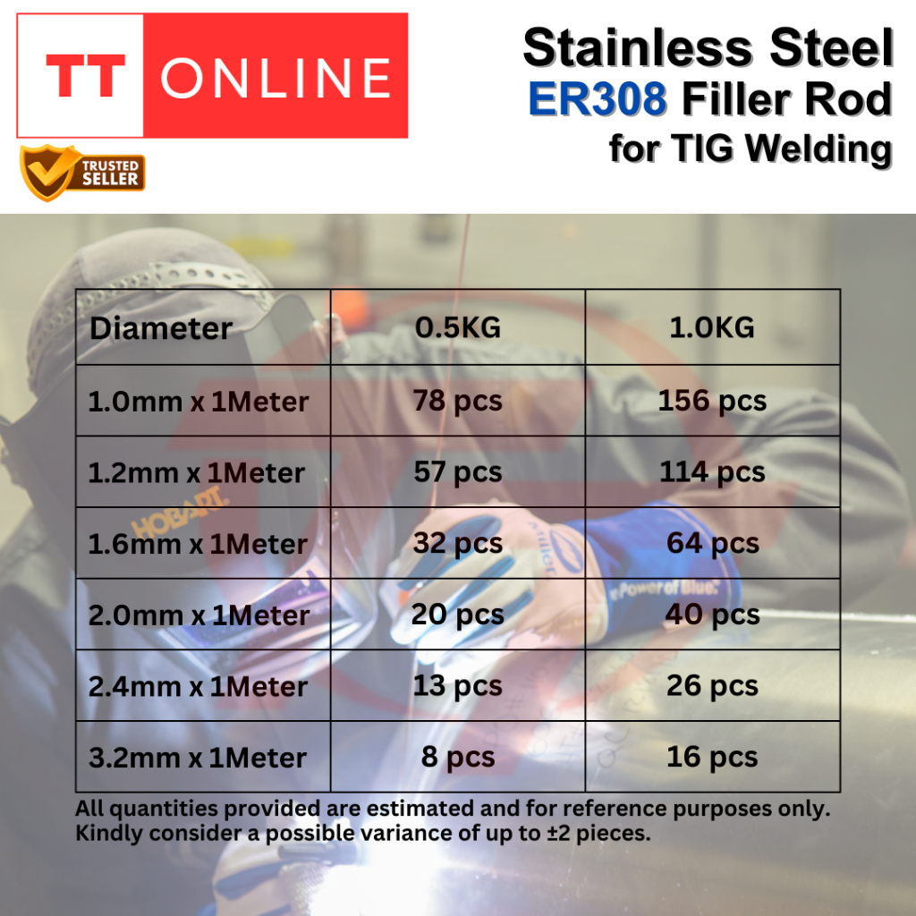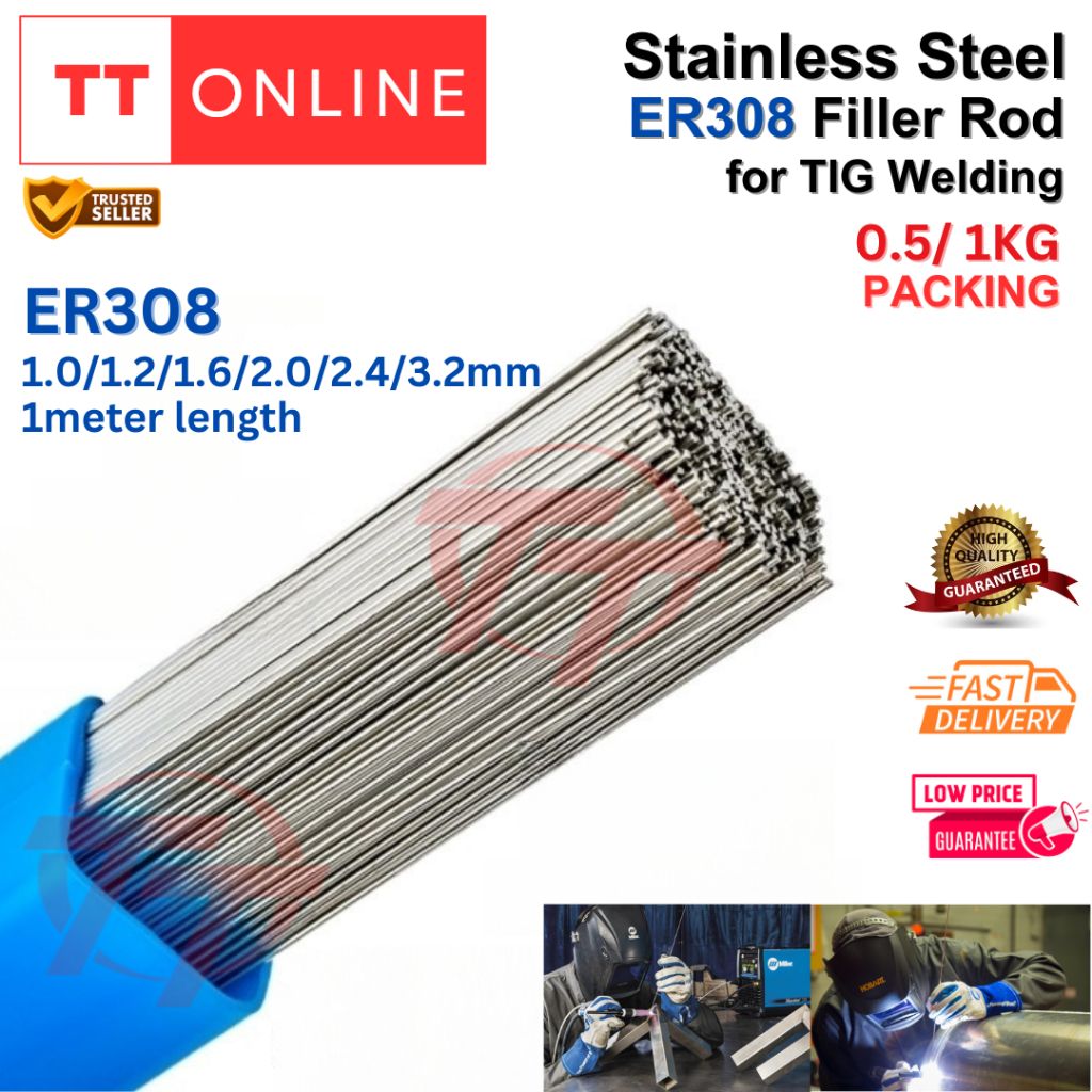 Stainless Steel ER308 Welding Rod Filler Rod TIG Welding Various Size x 1 meter (0.5KG / 1.0KG) Kawat Las Tig Rod