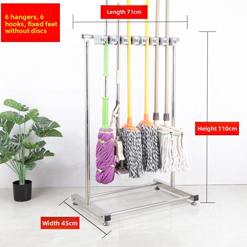 Stainless Steel Floor-Mounted Mop Rack Broom Rack Mop Rack Mop Holder Cleaning Tools Storage Mop Drain Rack