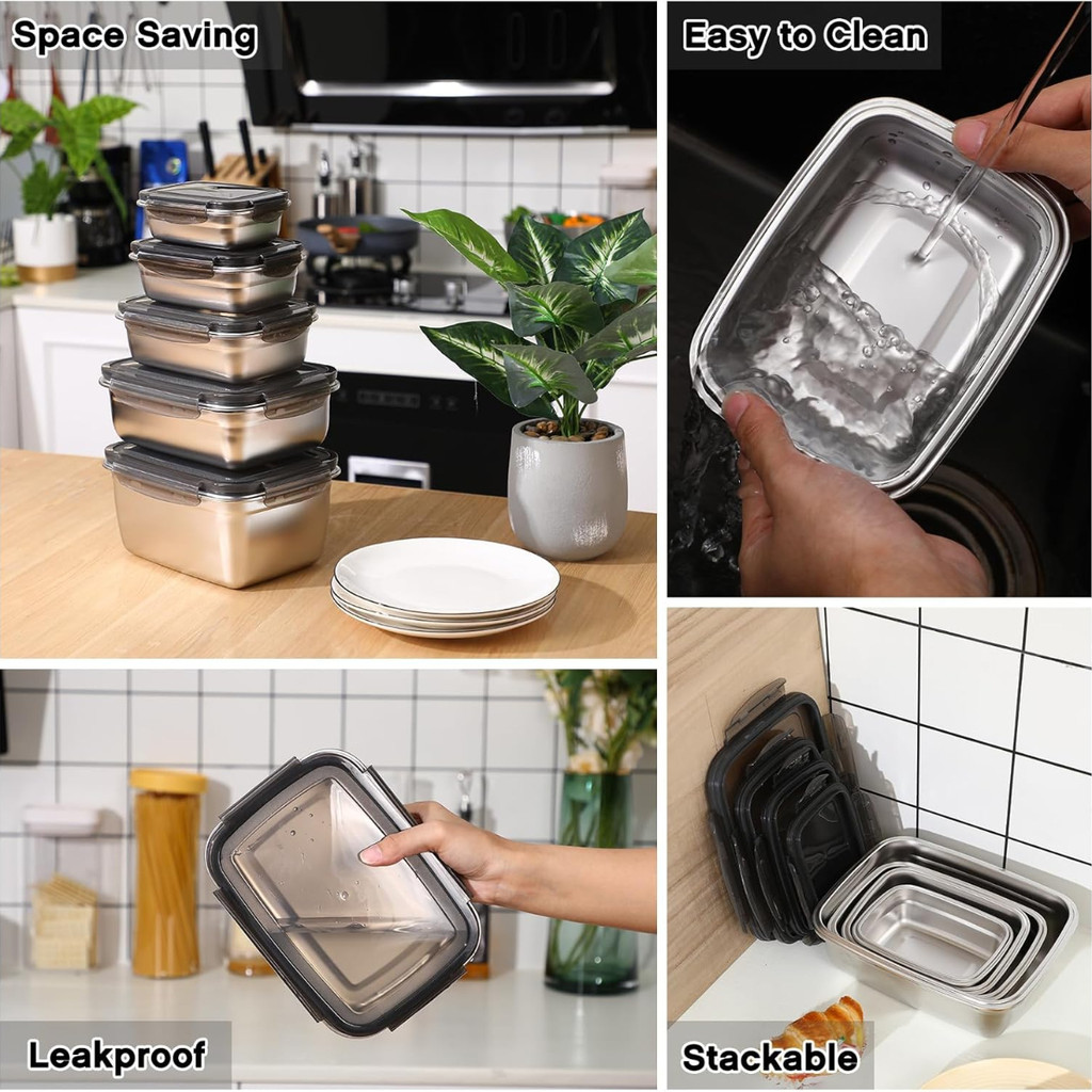 Stainless Steel Food Container Lunch Box Stainless Steel Refrigerator Clip Lock Storage Box Bekas Makanan Food Storage