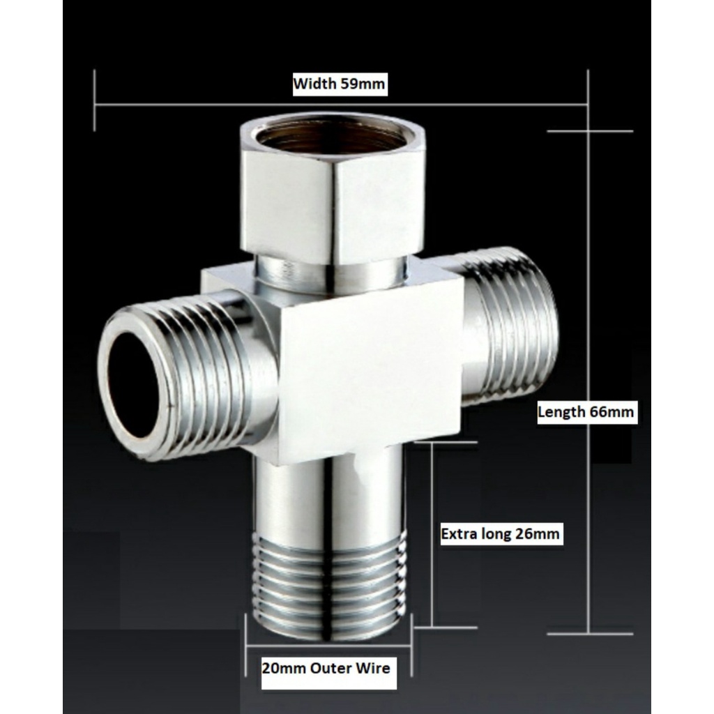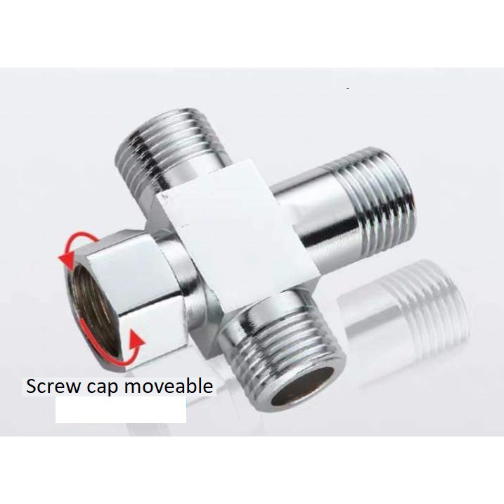 Stainless Steel Four Way Water Connector Joint Ten Type Water Diverter Joint Valve 1-Live In And 3-Out (20mm)