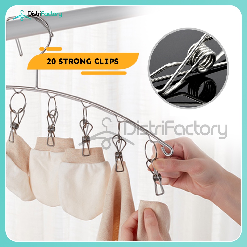Stainless Steel Hanger Laundry Drying Rack Clothes Hanger with 20 Clips for Hanging Socks, Bras, Cloth, Towel