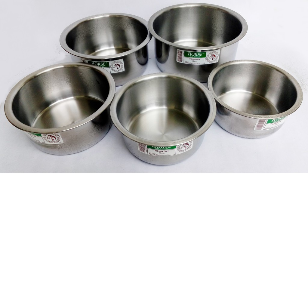 Stainless Steel Indian Pan 5 Sizes With Lids per Set (Diameter :16cm, 17cm, 18cm, 20cm, 22cm) - Horse Brand