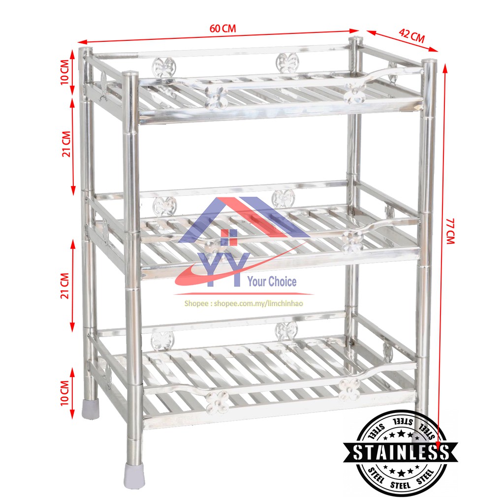 Stainless Steel Kitchen Shelf /Kitchen Storage Organizers /Stainless Steel Home Storage Rack/ Kitchen Rack/Rak dapur