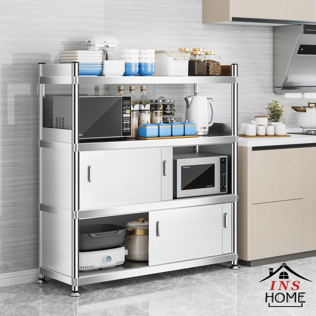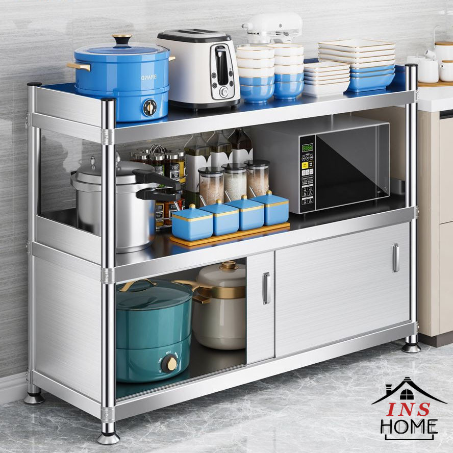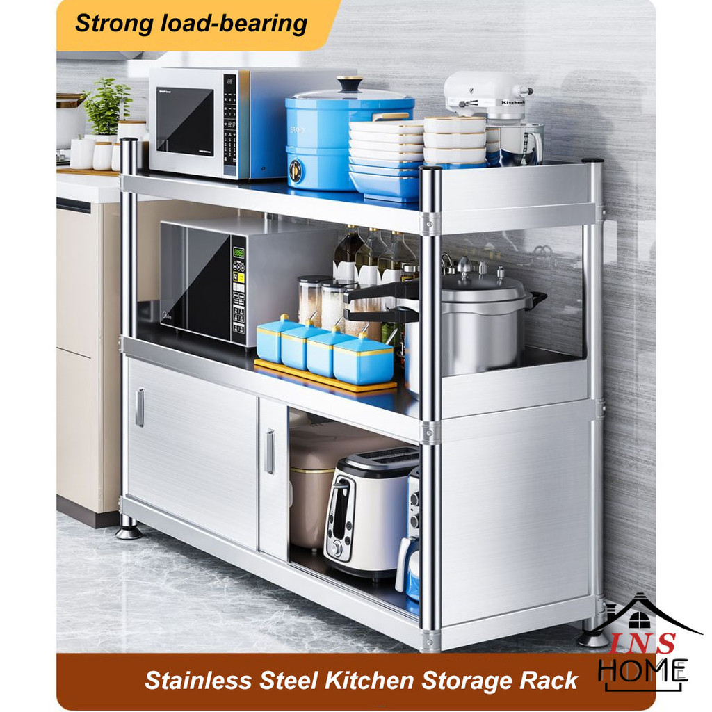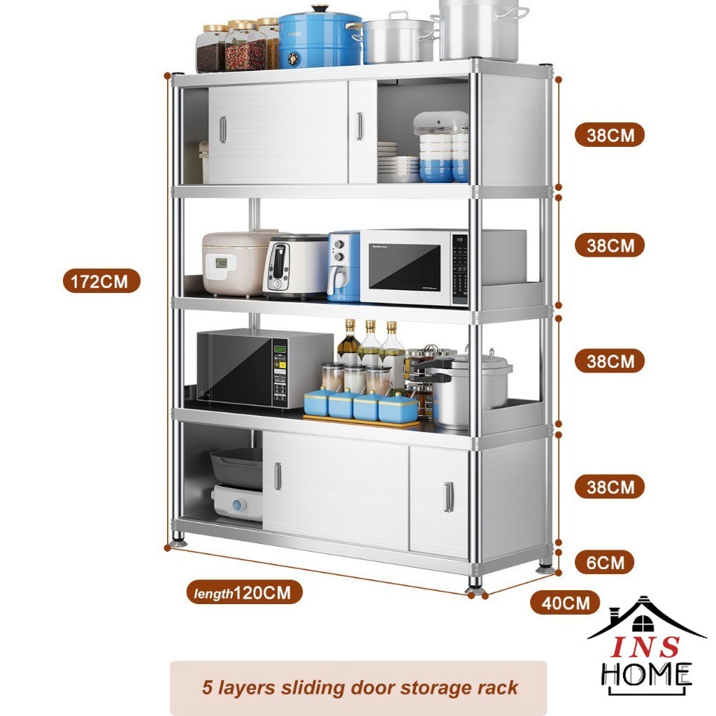 Stainless Steel Kitchen Storage Rack Sliding Door Multi-layer Kitcehn Cabinet Organizer Multipurpose Storage Rack
