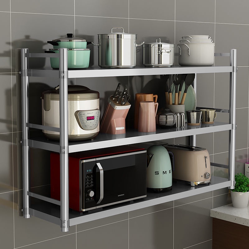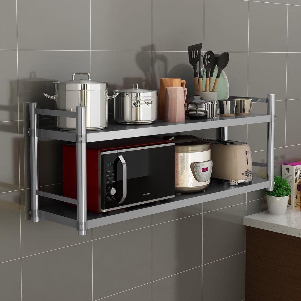 Stainless Steel Kitchen Wall-Mounted Storage Rack Wall Mountable Shelf Oven Microwave Oven Hanging Seasoning Seasoning W