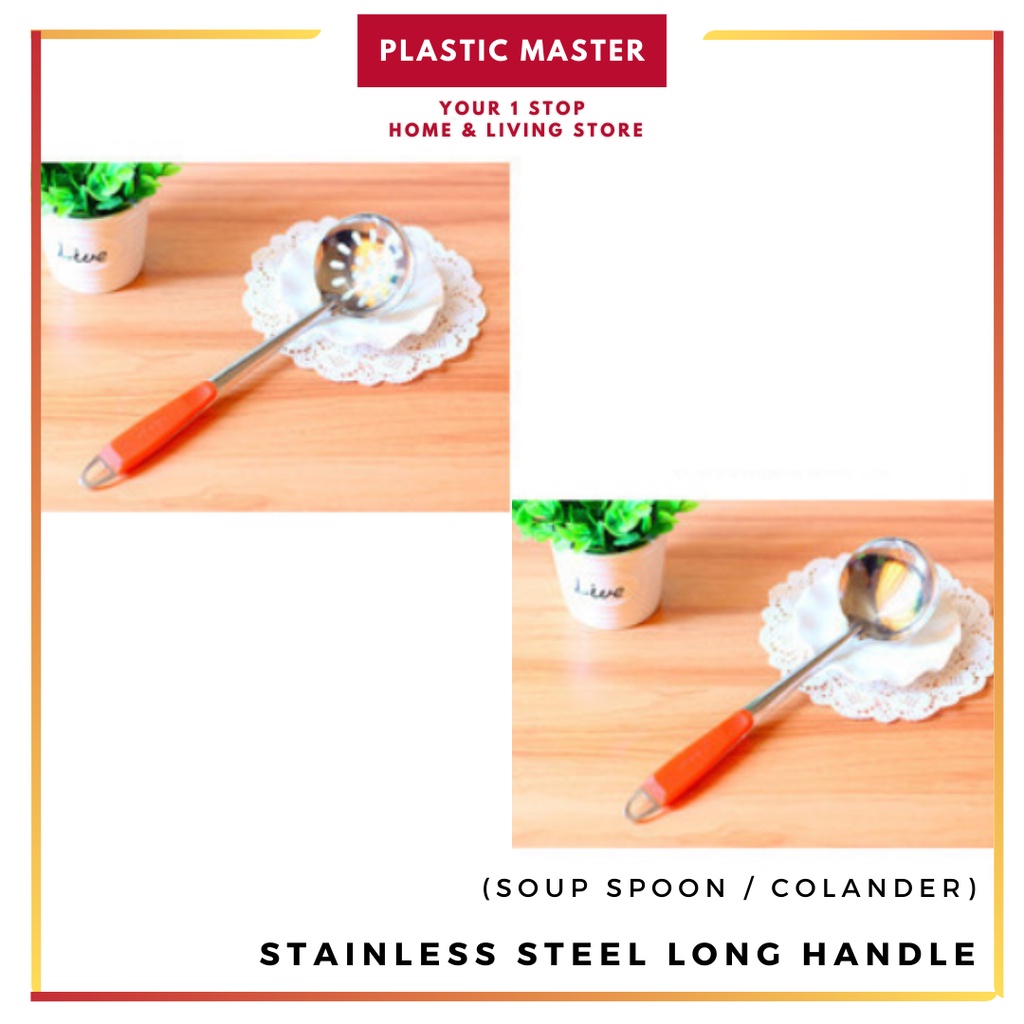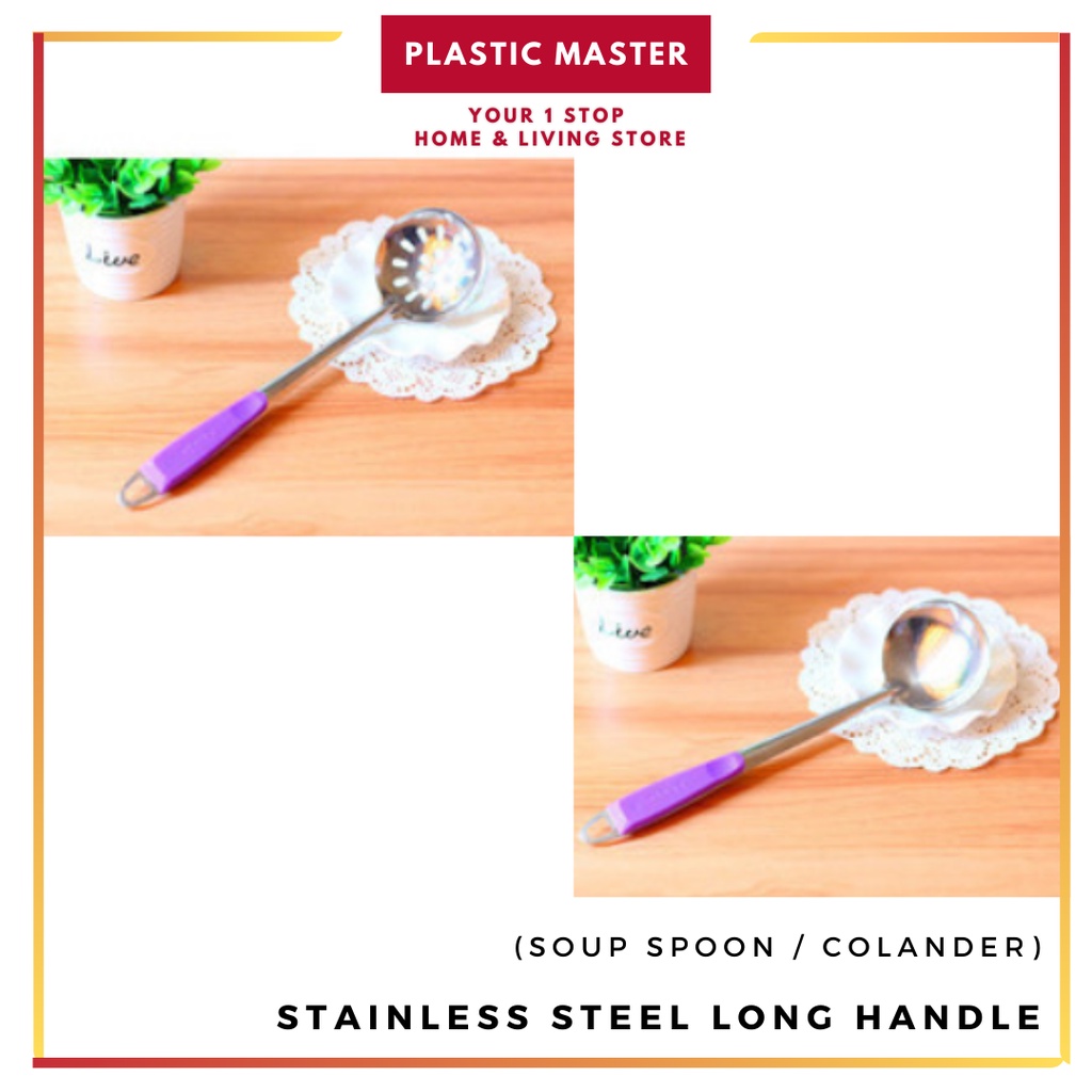 Stainless Steel Long Handle (Soup Spoon / Colander) Hangable Non-Hole Cooking Colorful Handle