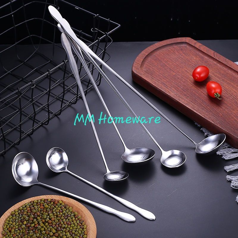 Stainless Steel Long Handle Stirring Spoon / Stainless Steel Gourd Seasoning Spoon / Sudu Aiskrim Panjang
