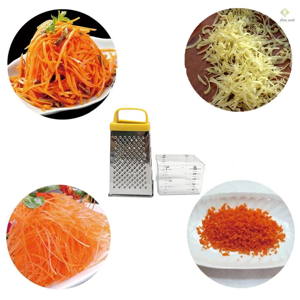 Stainless Steel Manual Cheese Vegetable Grater Box 4 Sided with Container Box (Handle in Random Color)