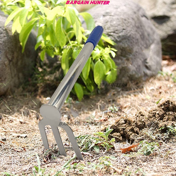 Stainless Steel Mini Hoe With Rake Double Sided Mini Cangkul Hoe And Rake Garden Mini Hoe / Garden Mini Rake Blue Handle