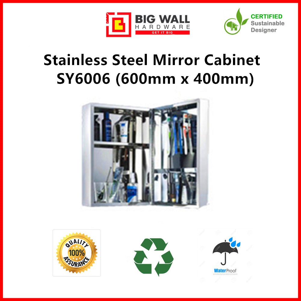 Stainless Steel Mirror Cabinet SY6006 (600mm x 400mm) Big Wall Hardware