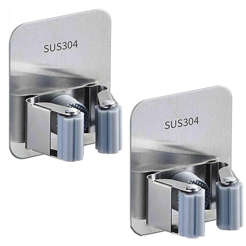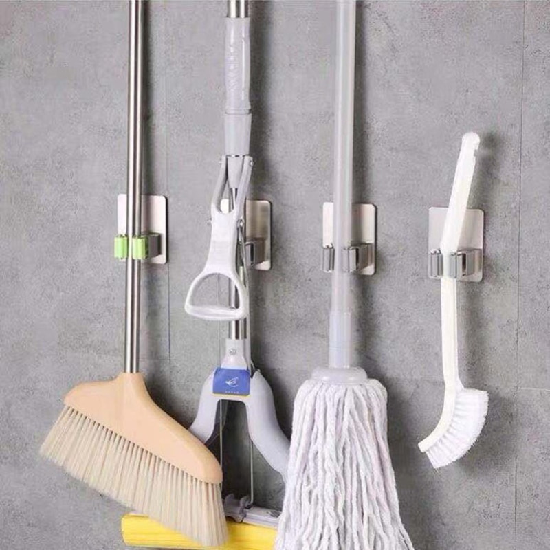 Stainless Steel Mop Hook Wall Mounted Mop Organizer Storage Rack Brush Broom Hanger Bathroom Hanging Mops Holder Clips
