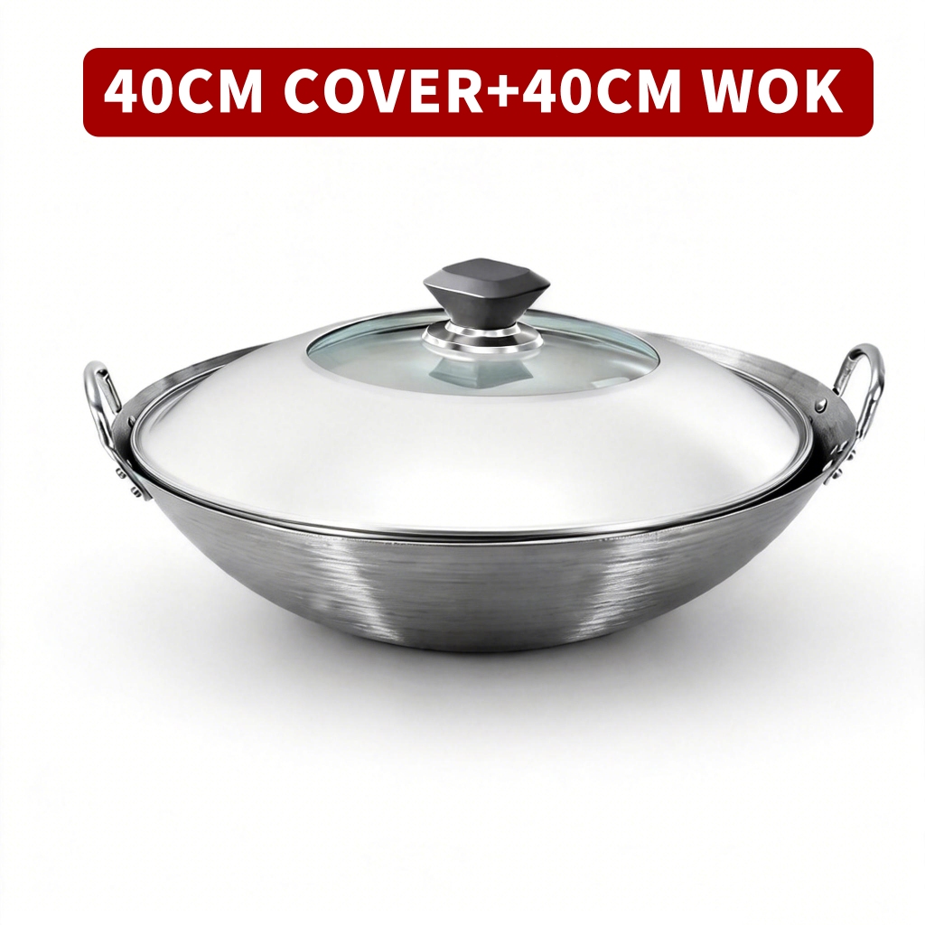 Stainless Steel Non-stick Wok 30-55cm High-capacity Double Handle Iron Pot Home kitchen Frying Pan Apply For All Stove