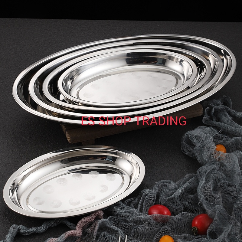 Stainless Steel Oval /Egg Shape Dish /Plate/ Steam fish plate / Pinggan Ikan-40cm/45cm