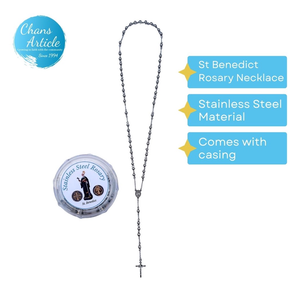 Stainless Steel Rosary Necklace 26033 Full Rosary with St Benedict Centerpiece Full Rosary