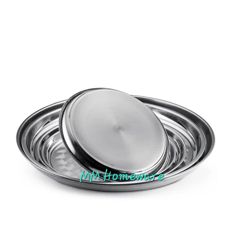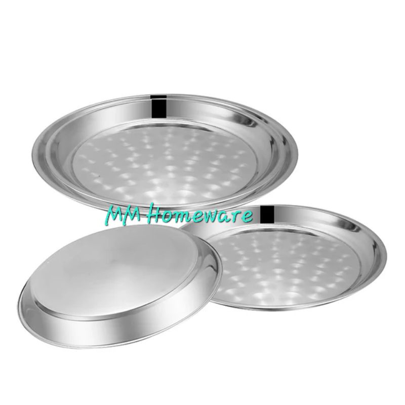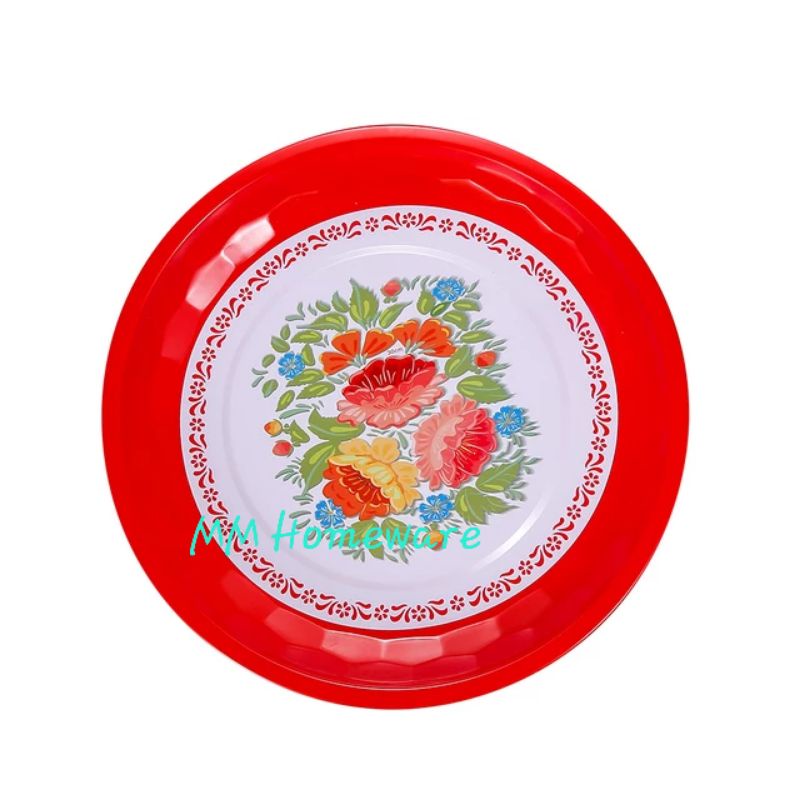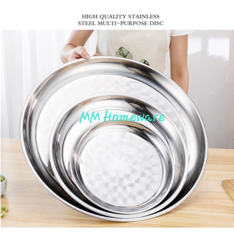 Stainless Steel Round Serving Tray / Plastic Round Tray / Metal Flower Tray / Dulang Kenduri Talam Bulat