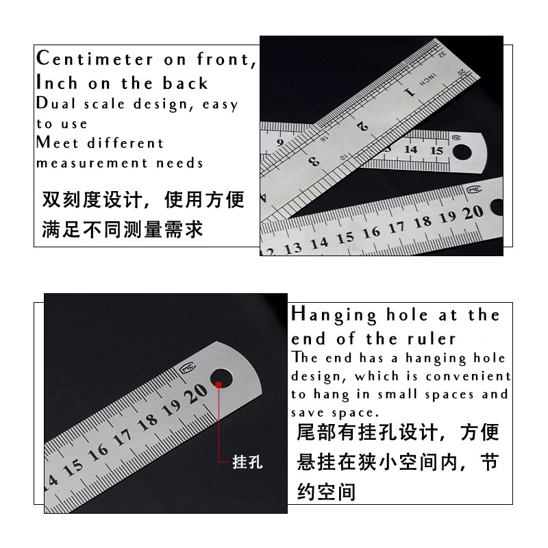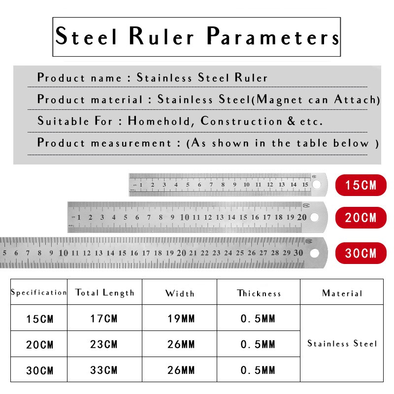 Stainless Steel Ruler Double Sided Ruler Measuring tools Metal Ruler 15cm/20cm/30cm Besi Pembaris