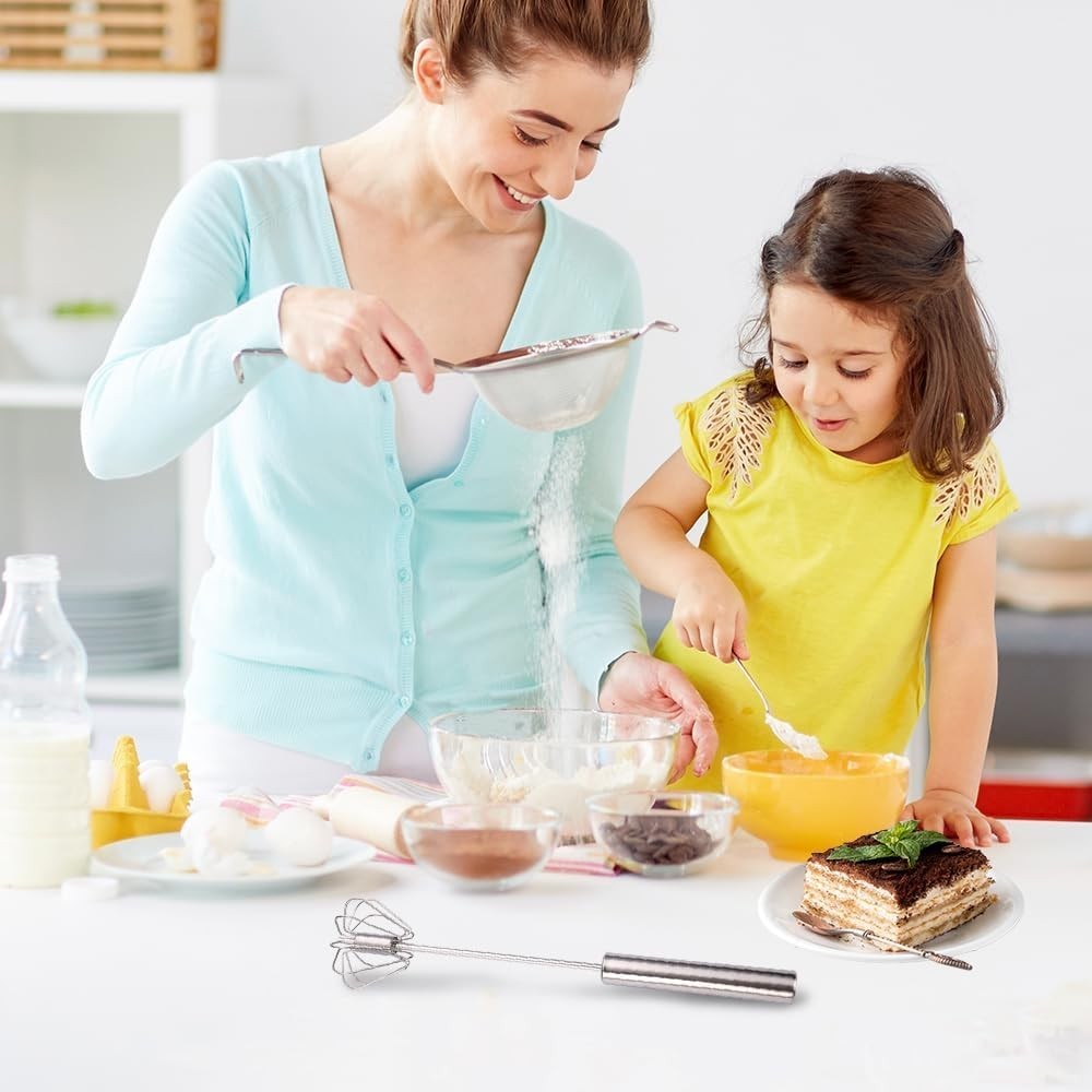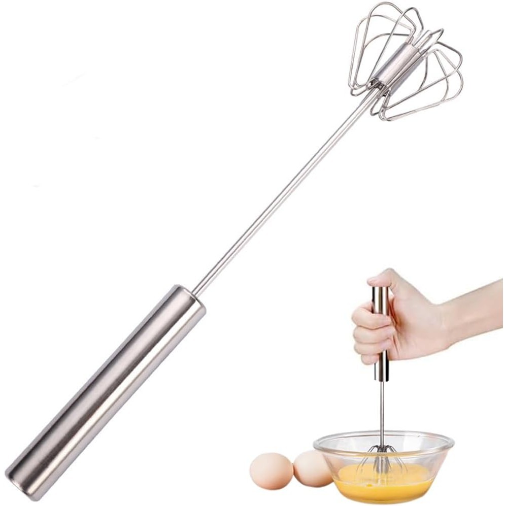 Stainless Steel Semi-Automatic Whisk, Stainless Steel Egg Whisk, Hand Push Rotary Whisk Blender Kitchen Gadgets for Blending