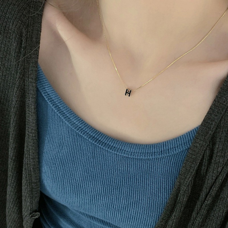 Stainless Steel Shell H Letter Necklace Women's 18K Gold Simple Letter Pendant Accessories Gift Wholesale