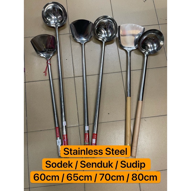 Stainless Steel Sodek/Senduk/Sudip Besar Pemegang Kayu/Stainless Steel Kenduri / Big Spatula Turner Ladle/ 60/65/70/80cm