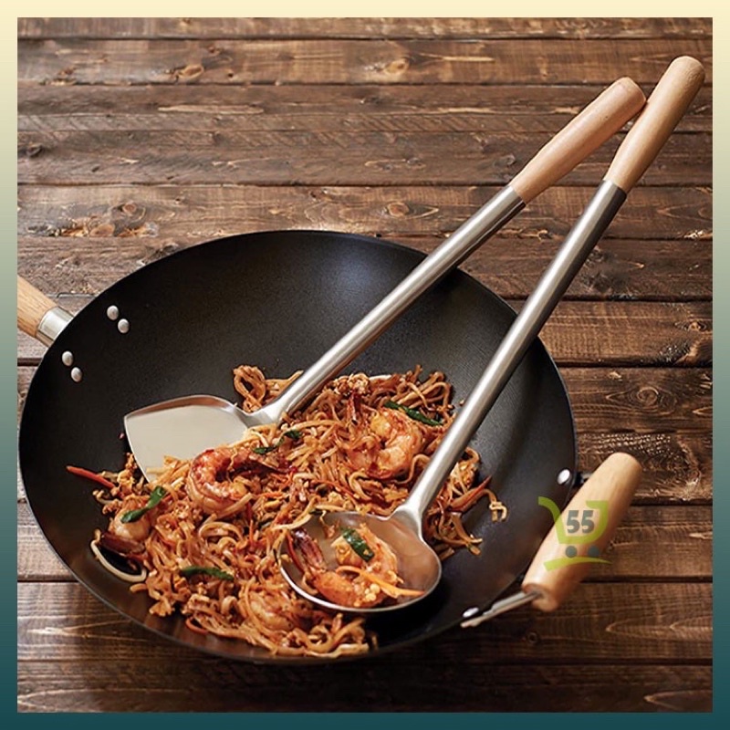 Stainless Steel Sodek / Senduk / Sudip Besar Pemegang Kayu / Stainless Steel Kenduri / Big Spatula Turner Ladle