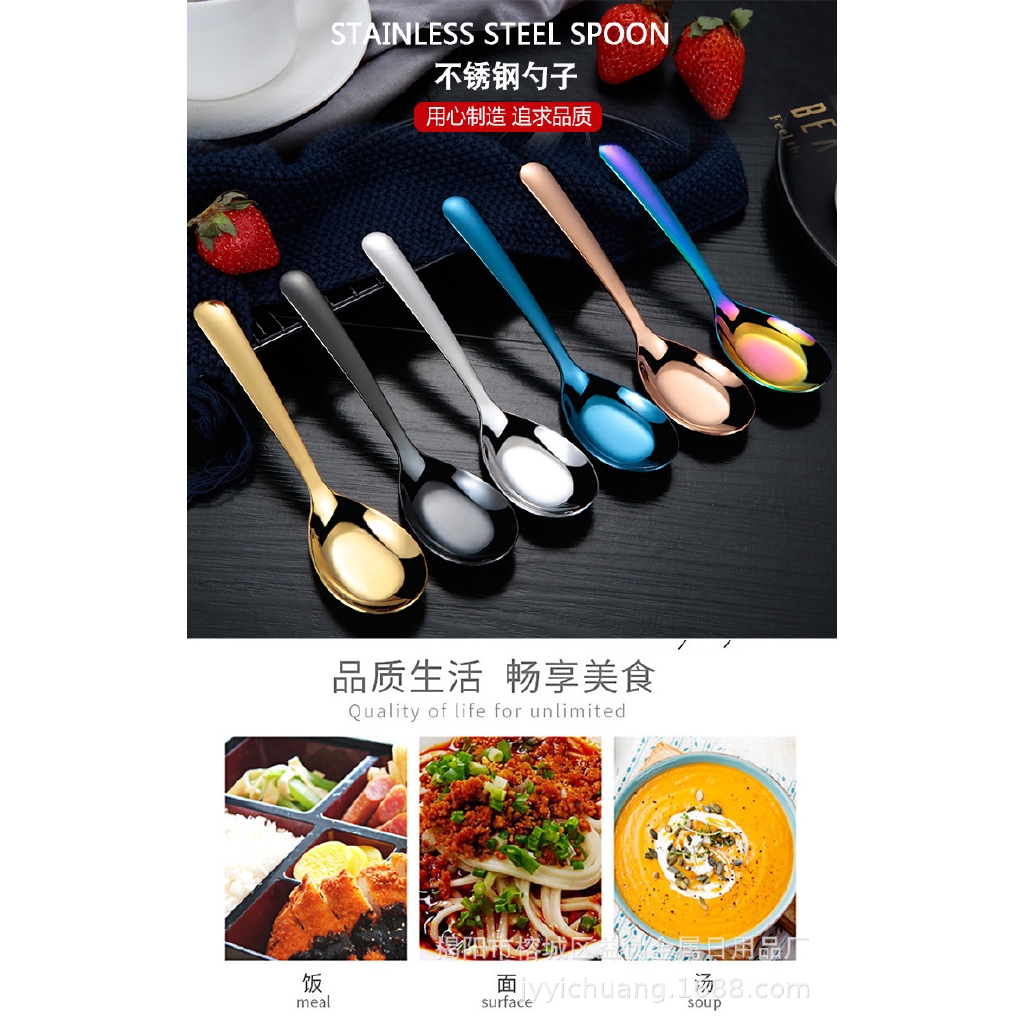 Stainless Steel Soup Spoon Flat Bottom Deepening Spoon Hotel Tableware PVD Gold Spoon