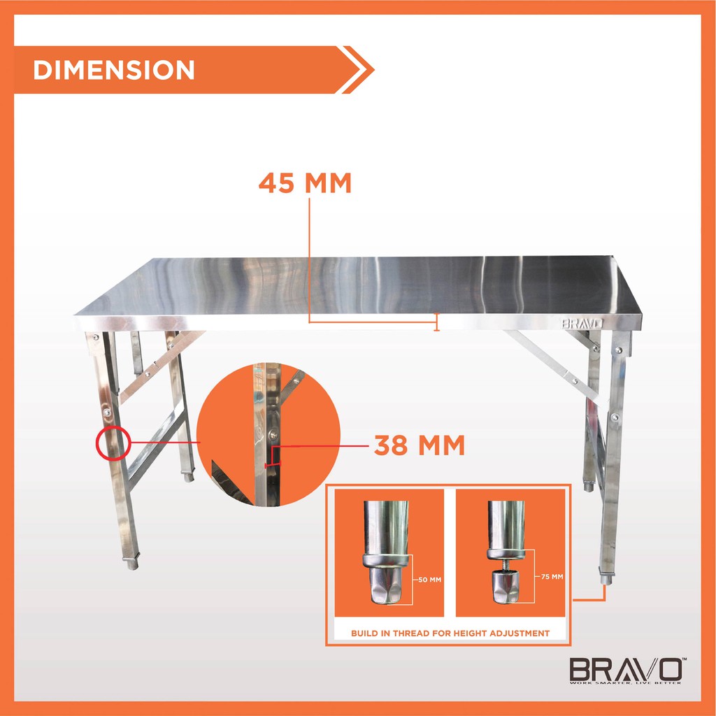 Stainless Steel Table Portable Foldable Adjustable Multipurpose Dining Table Dapur Meja Lipat Mudah Alih Serbaguna
