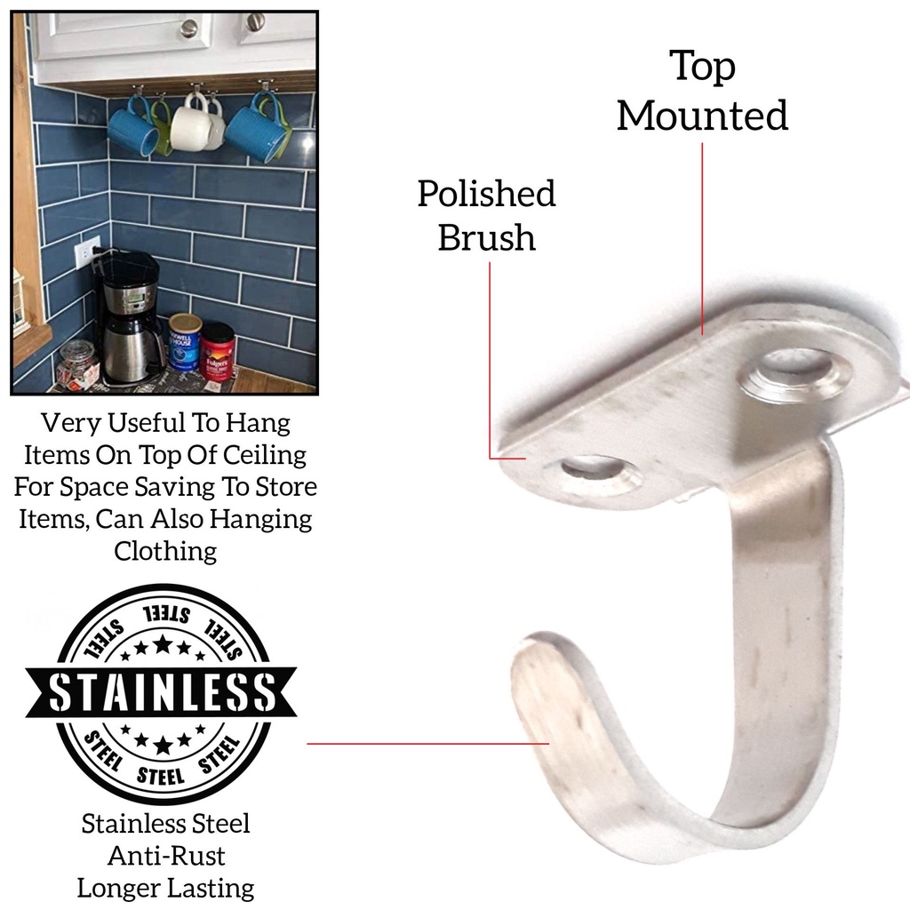 Stainless Steel Top J Hook For Cabinet ,Kitchen, Bathroom , Room ,Household, Home Hanging Stuff Accessories