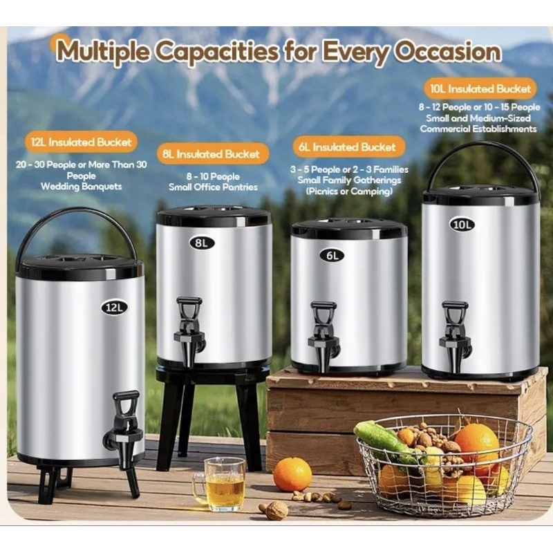 Bekas Air Panas Sejuk Stainless Steel Water Dispenser Hot Cold Tong Coffee Tea Insulated Termos Milk Pot Barrel 奶茶桶