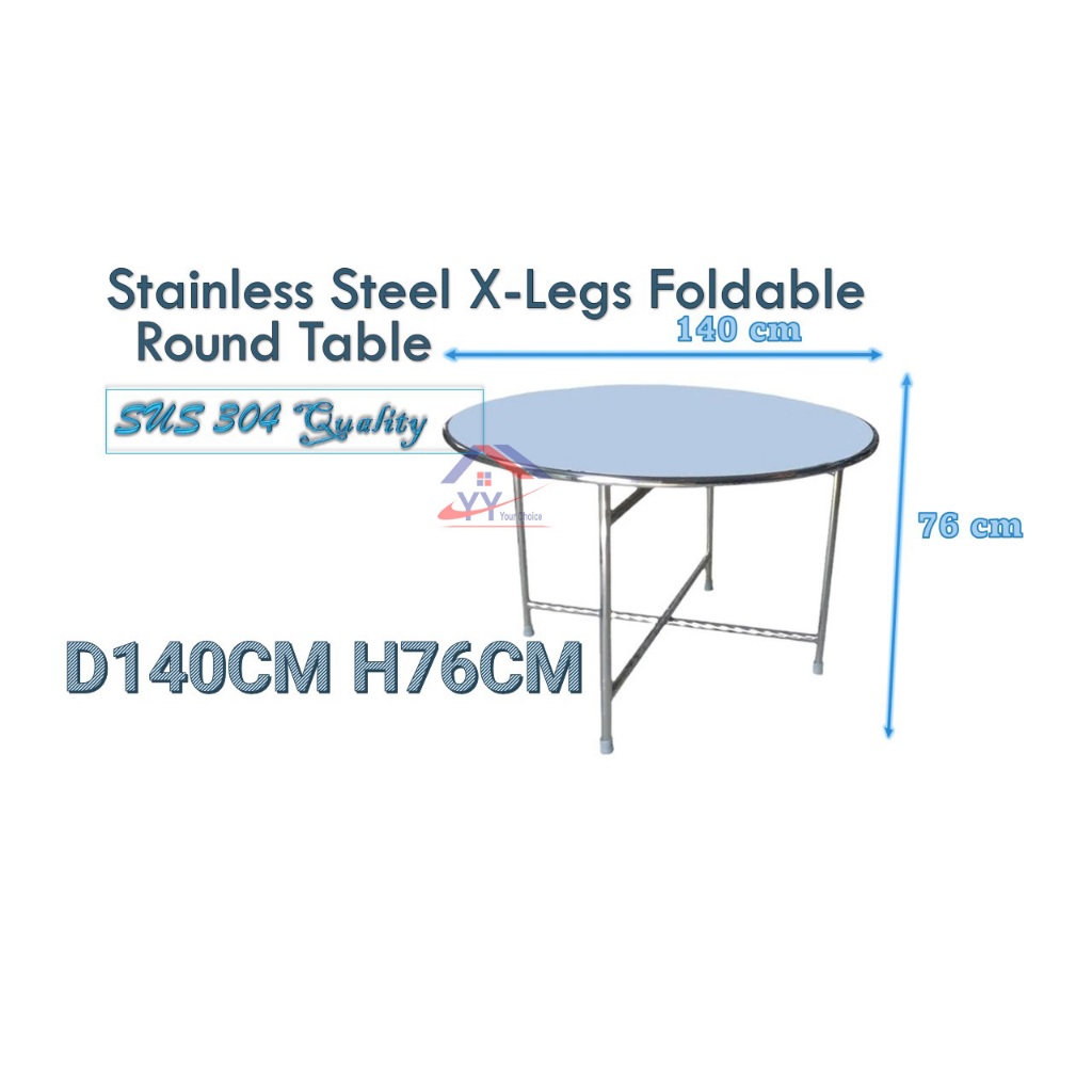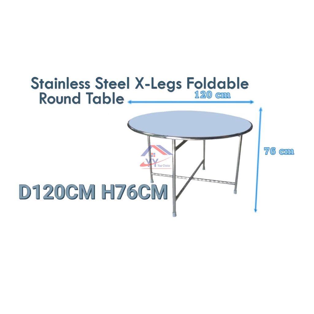 Stainless Steel X-Legs Foldable Round Table/Meja Kerja Bulat/Meja Lipat Kerja/Dining/Indoor Outdoor/Meja Makan/Portable