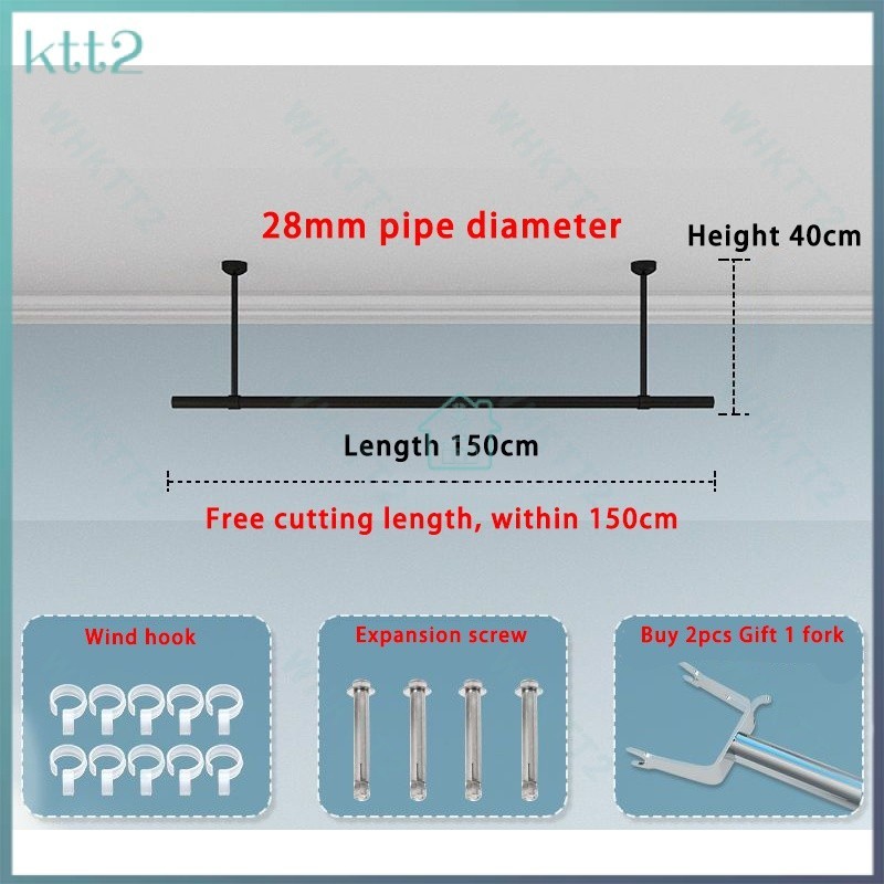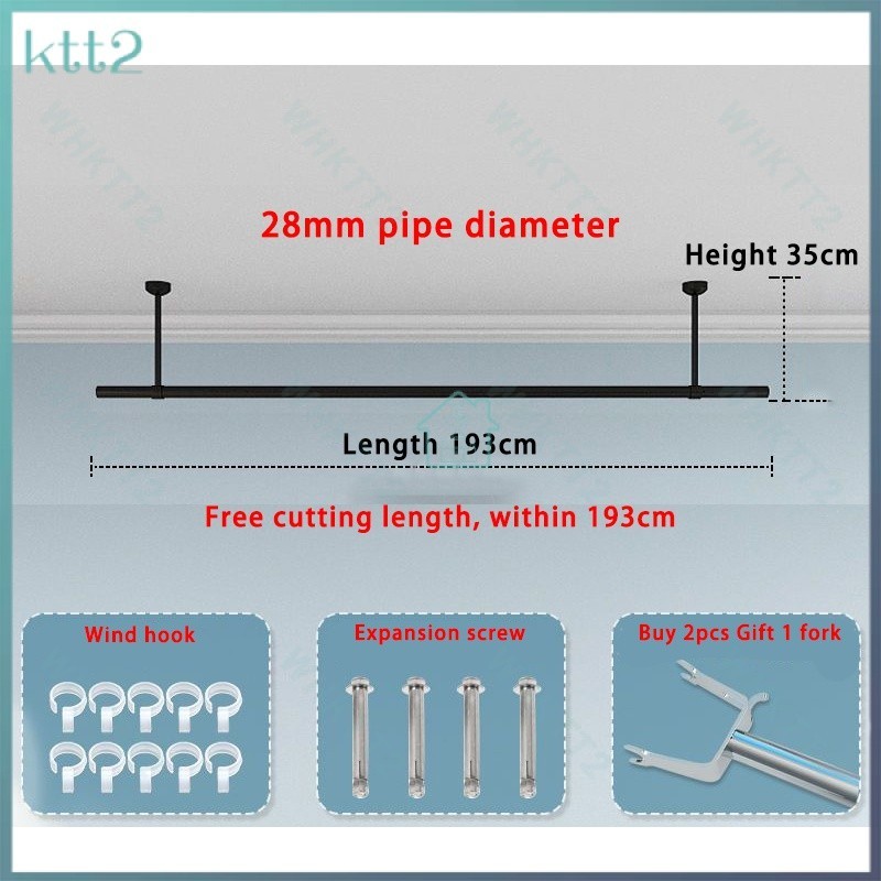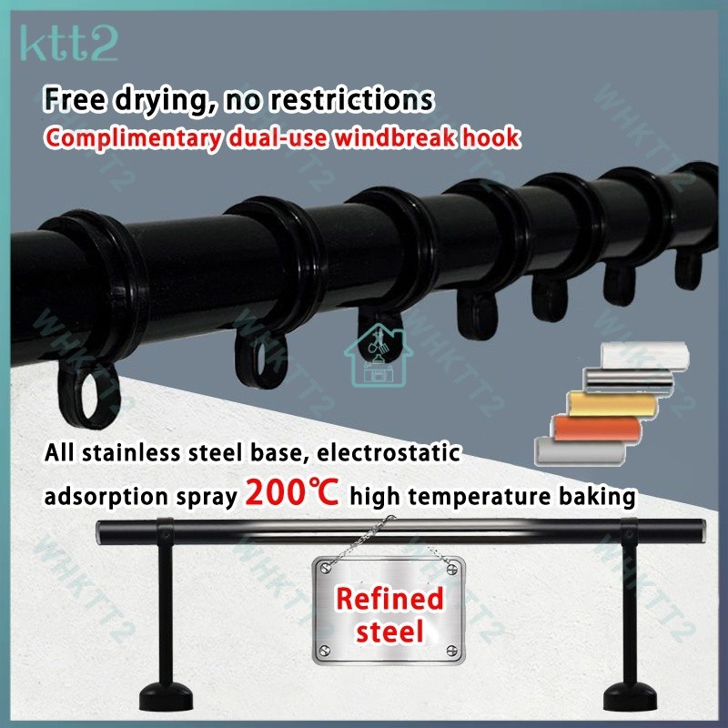 Stainless steel clothes drying rod balcony fixed hanging rod 28 diameter thickened indoor and outdoor drying hanger single and double rod