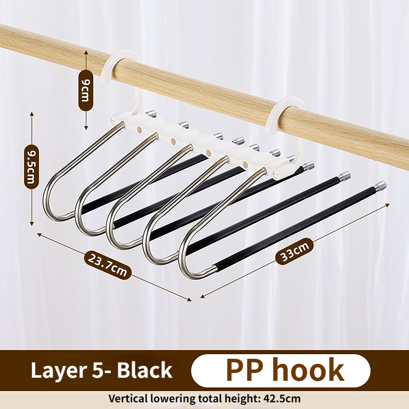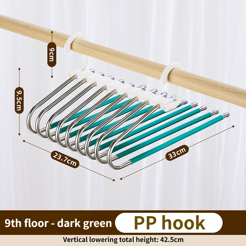 Stainless steel pants rack new multifunctional pants rack retractable pants rack 9-layer magic clothes rack