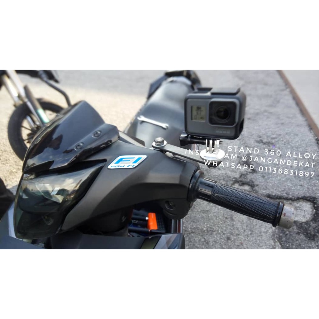 Stand GoPro Motorcycle Side Mirror Mount Alloy & Action Camera breket 360