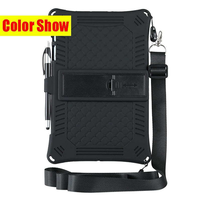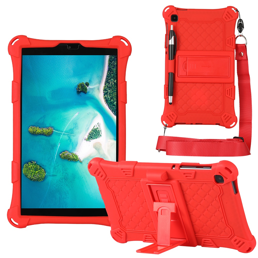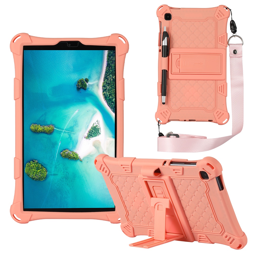 Stand Tablet Case For Samsung Galaxy Tab A7 10.4" SM-T500 SM-T505 /TabA7 Lite 8.7" SM-T220 SM-T225 ,Solid color Super Soft Silicone Cover with Shoulder Strap & Stylu