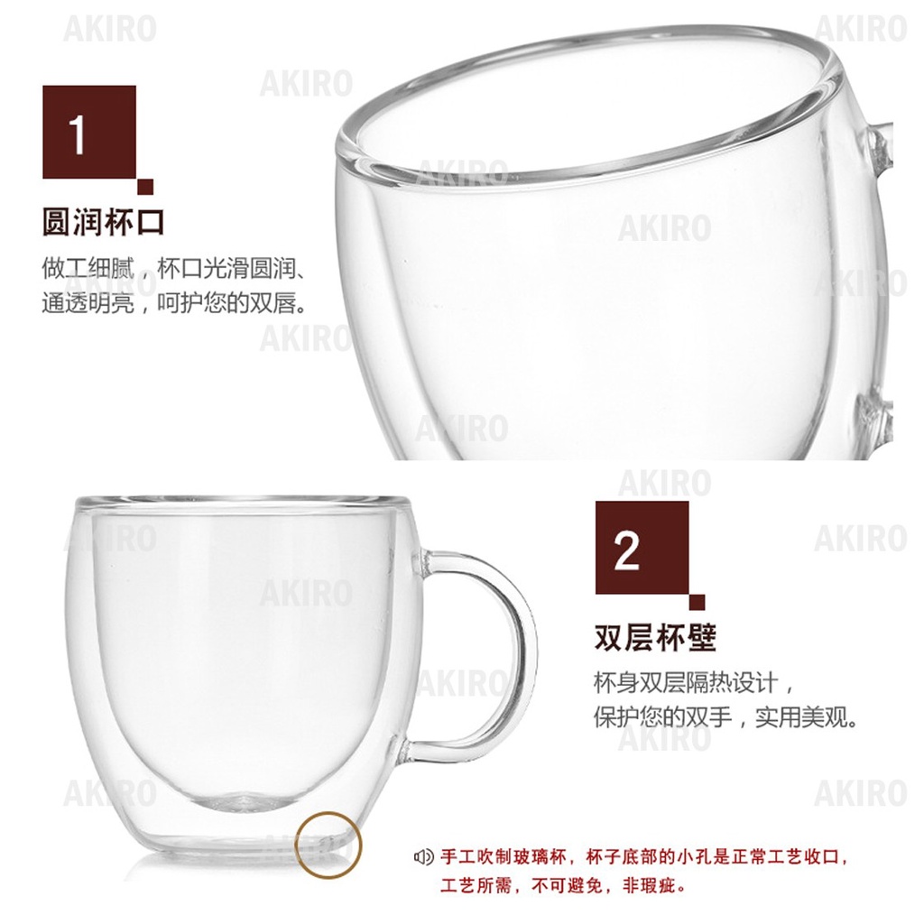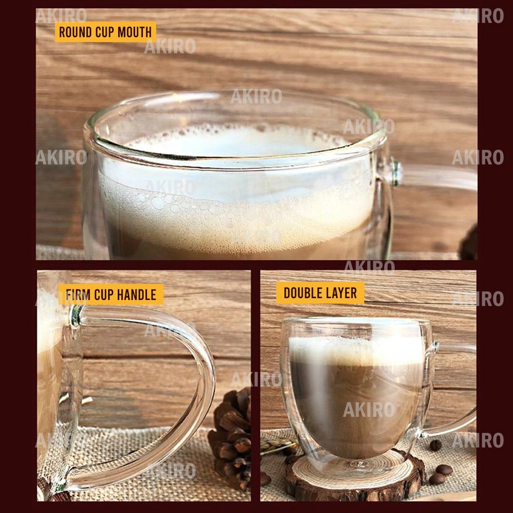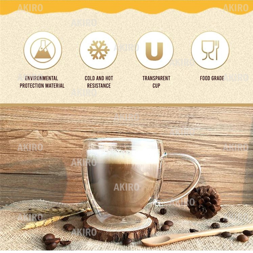 (Crazy Sales) AKIRO 150-450ML High Borosilicate Insulation Double Wall Clear Glass Mug Coffee Cup Tea Milk Drinkware