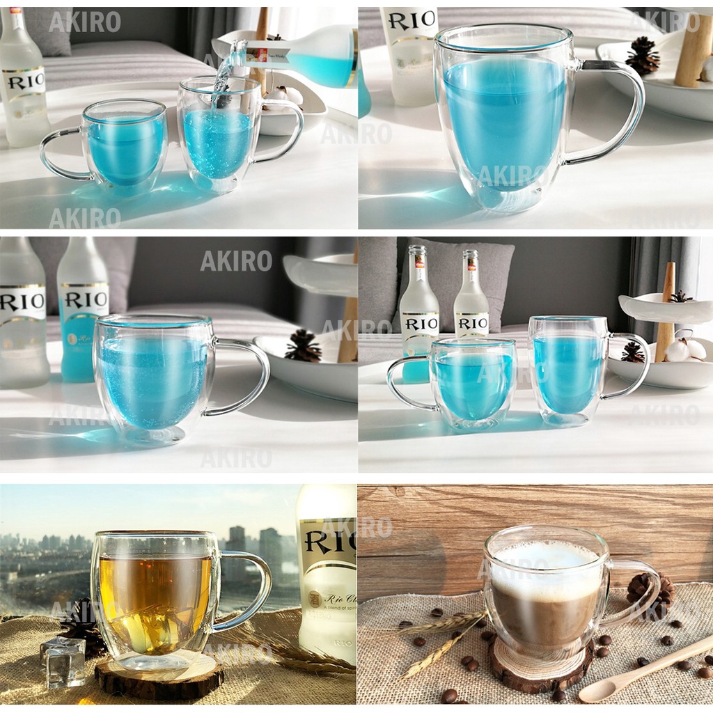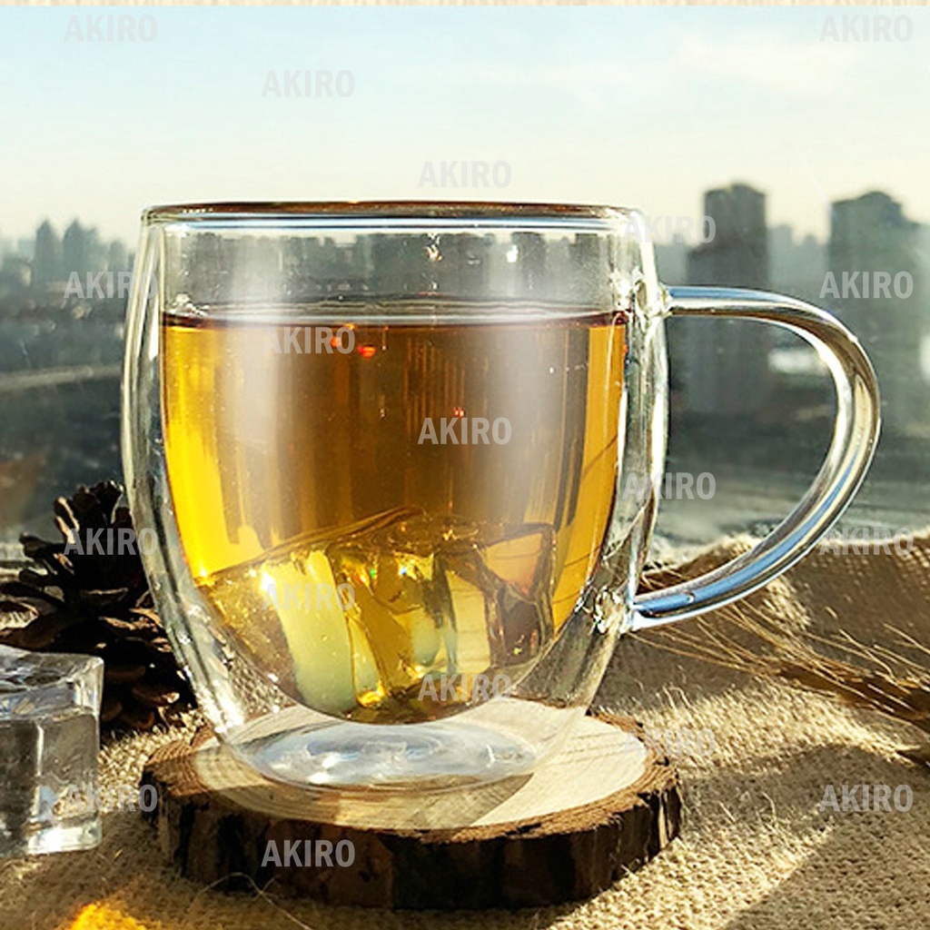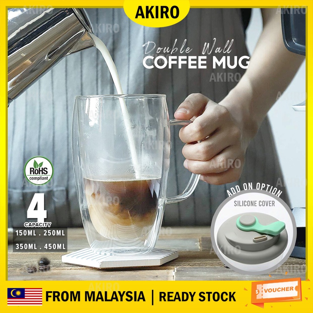 (Crazy Sales) AKIRO 150-450ML High Borosilicate Insulation Double Wall Clear Glass Mug Coffee Cup Tea Milk Drinkware