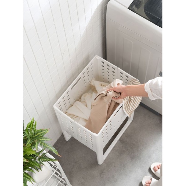 Standable Foldable Laundry Basket Sturdy Plastic Basket Stand Laundry Storage Basket Organizer Basket Dirty Cloth Basket
