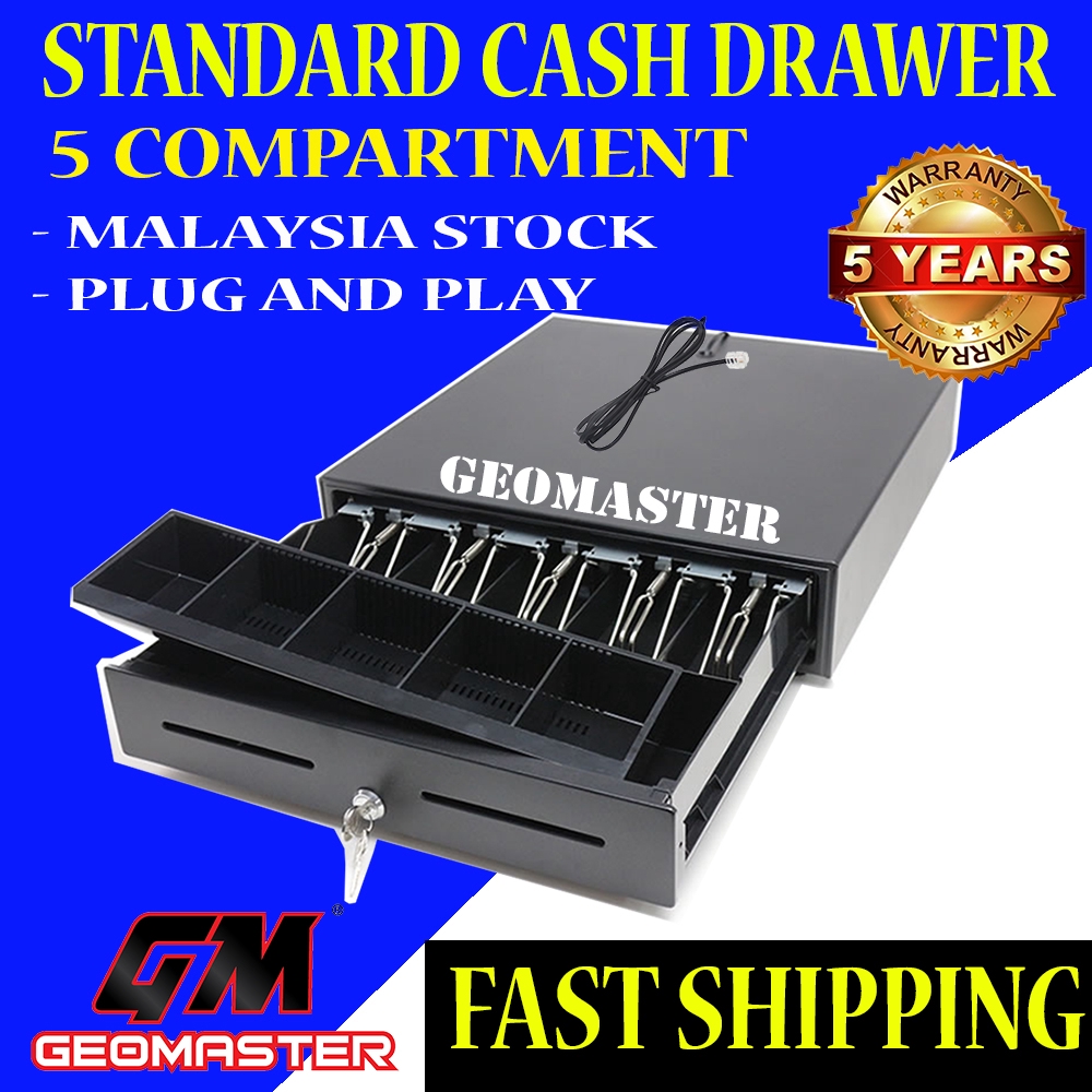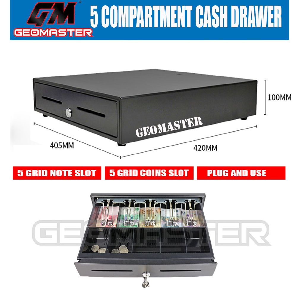 Standard Cash Drawer 5 Compartment Cash Drawer Cashier Box RJ-11 Key Lock With 5 Bill 5 Coin Trays