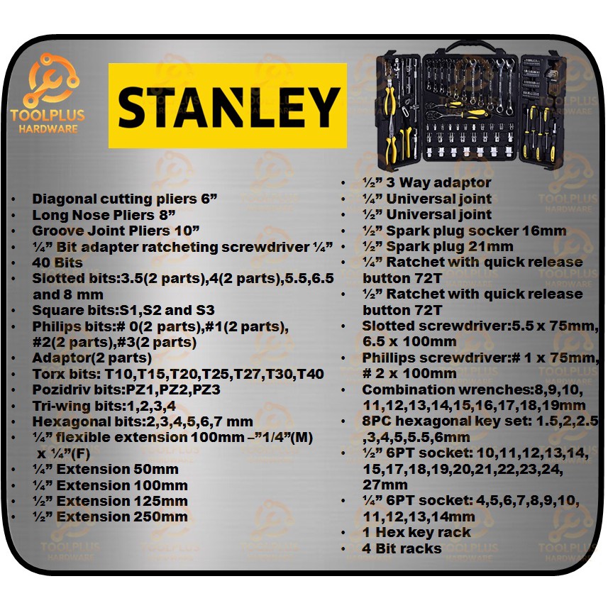 Stanley 110 PCS MULTI-TOOL SET WITH BRIEFCASE (81-243) TOOL KIT SET COMBINATION SCREWDRIVER WRENCH PLIER HEX KEY