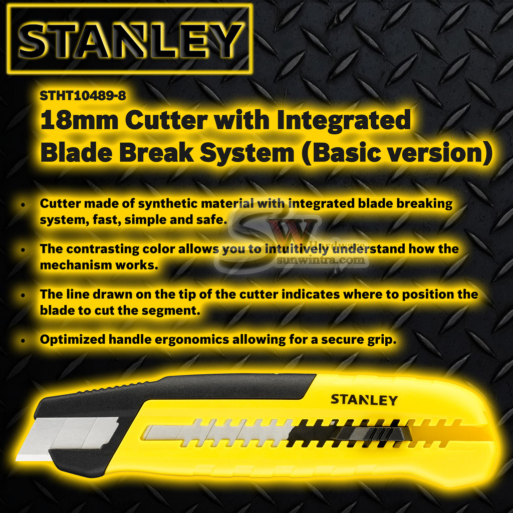 Stanley 18mm Cutter with Integrated Blade Break System Snap-Off Cutter Quicker Snaps STHT10489-8