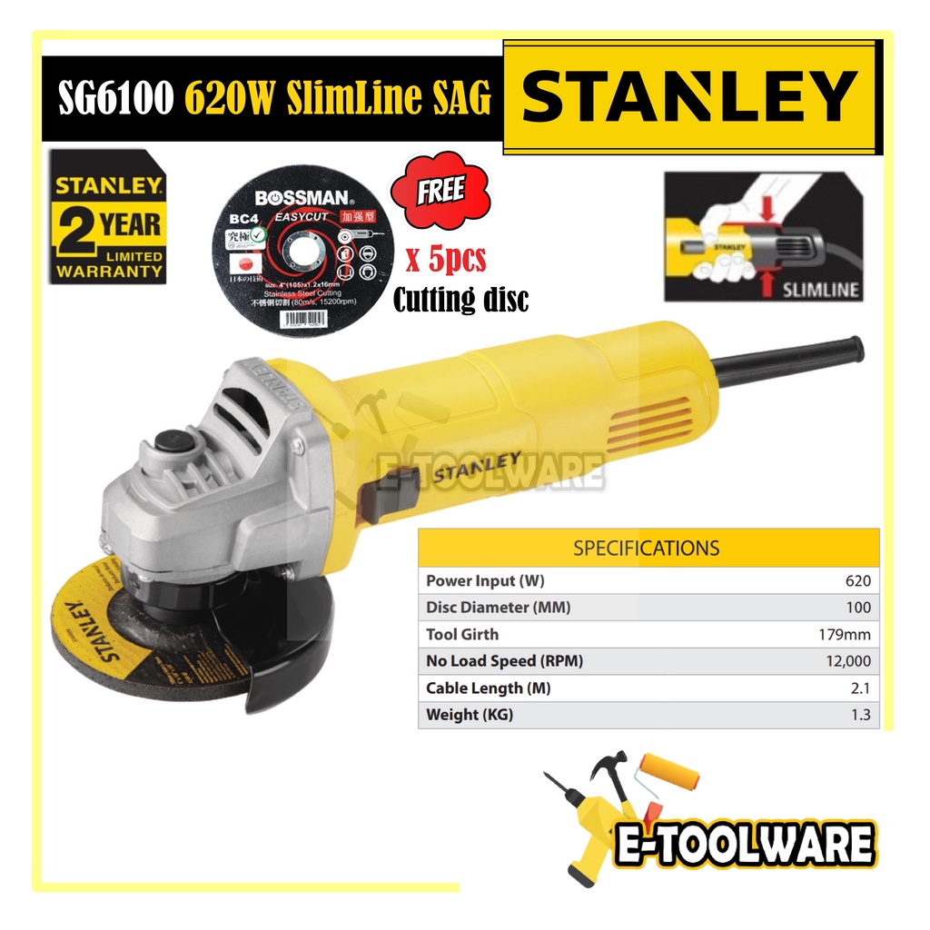 Stanley SG6100 Slimline Small Angle Grinder Sag 620W