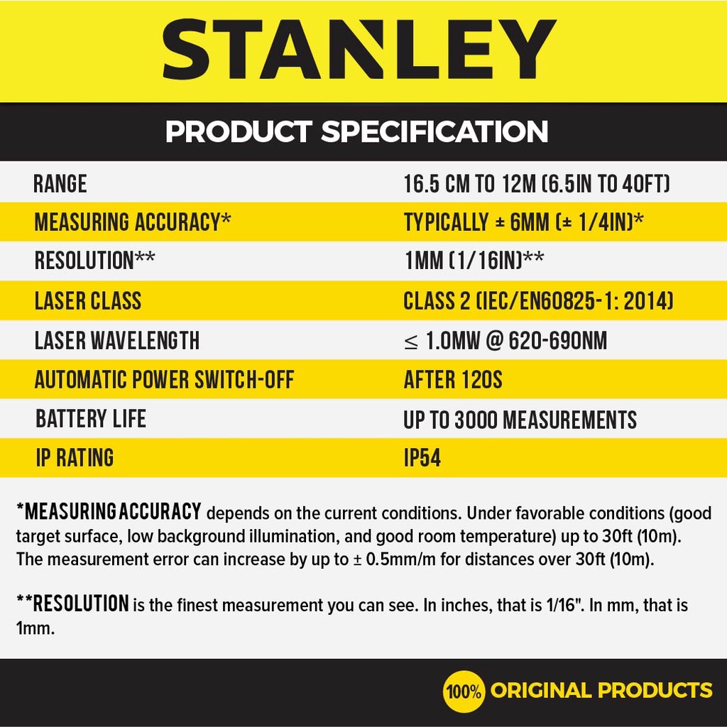 Stanley TLM40 Pocket Laser Distance Measure (12m/40ft) STHT77666